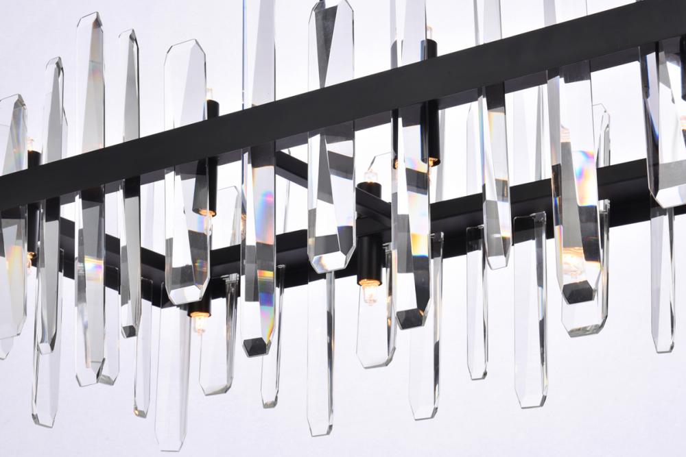 Modern crystal chandelier features top and bottom tier crystal prisms staggered along the wrought iron frame. The thick metal frame wraps around top grade crystal prisms ensure it is built to last, definitely worth it. Hang this work of art and dim the lights for a bit of sophisticated lighting in your home. Get lost in a beautiful light and sleek design available in multiple finishes. The hanging rod conveniently comes with a slope ceiling adapter, perfect for your vaulted or angled ceiling.