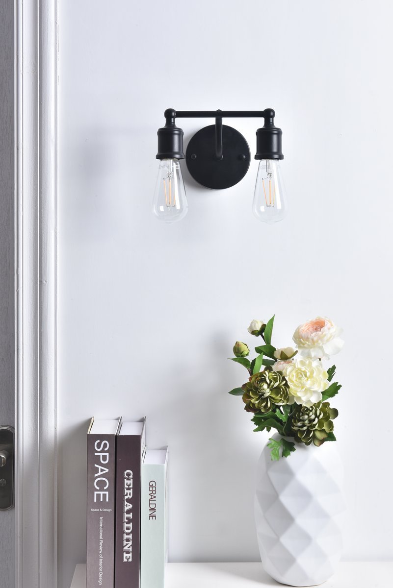The classical elegance of the Serif collection wall lamp in a black finish brings graceful allure. The arms--reminiscent of a classical font-- supports the 2 lights that emit a reassuring brilliance, and its gentle presence makes it a wonderful fixture to greet your guests at the entry way, illuminate your cabinets in the living room, or shine in the powder room.