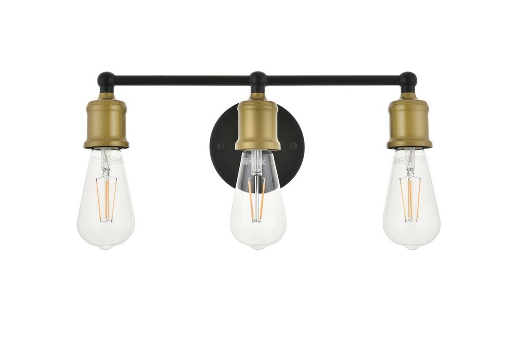 The classical elegance of the Serif collection wall lamp in a brass and black finish brings graceful allure. The arms--reminiscent of a classical font-- supports the 3 lights that emit a reassuring brilliance, and its gentle presence makes it a wonderful fixture to greet your guests at the entry way, illuminate your nightstands in the bedrooms, or shine in the powder room.