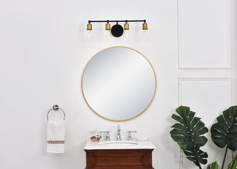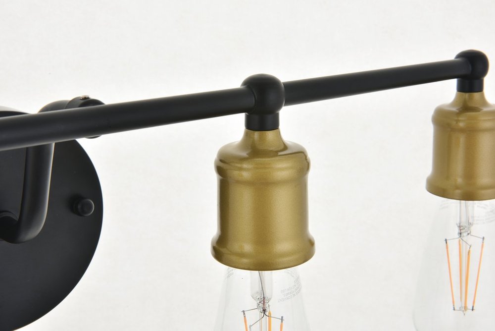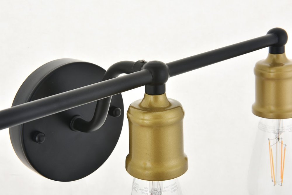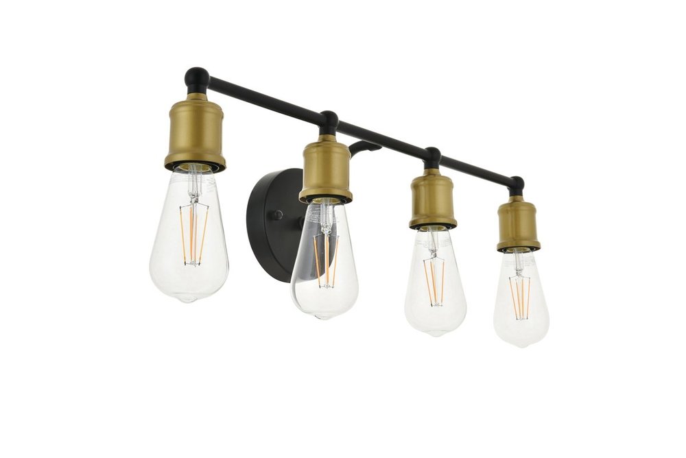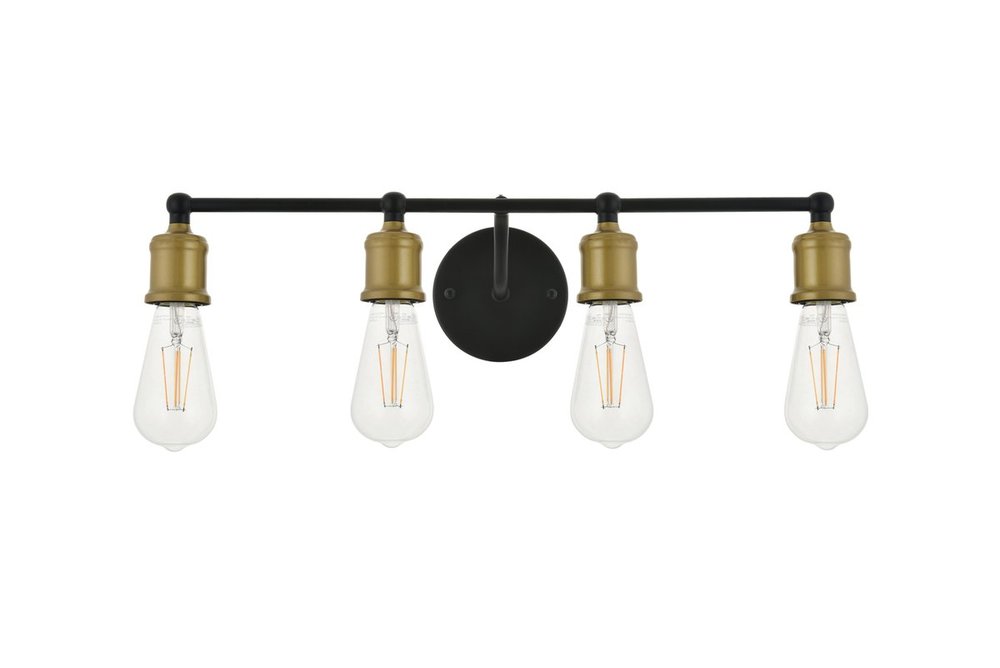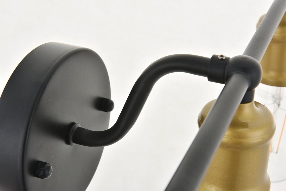 The classical elegance of the Serif collection wall lamp in a brass and black finish brings graceful allure. The arms--reminiscent of a classical font-- supports the 4 lights that emit a reassuring brilliance, and its gentle presence makes it a wonderful fixture to greet your guests at the entry way, illuminate your cabinets in the living room, or shine in the powder room.