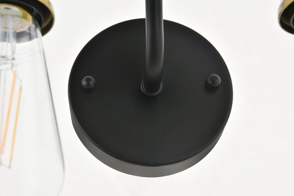 Two-toned brass and black finish 4-light wall sconce with an undulating arm and circular back plate