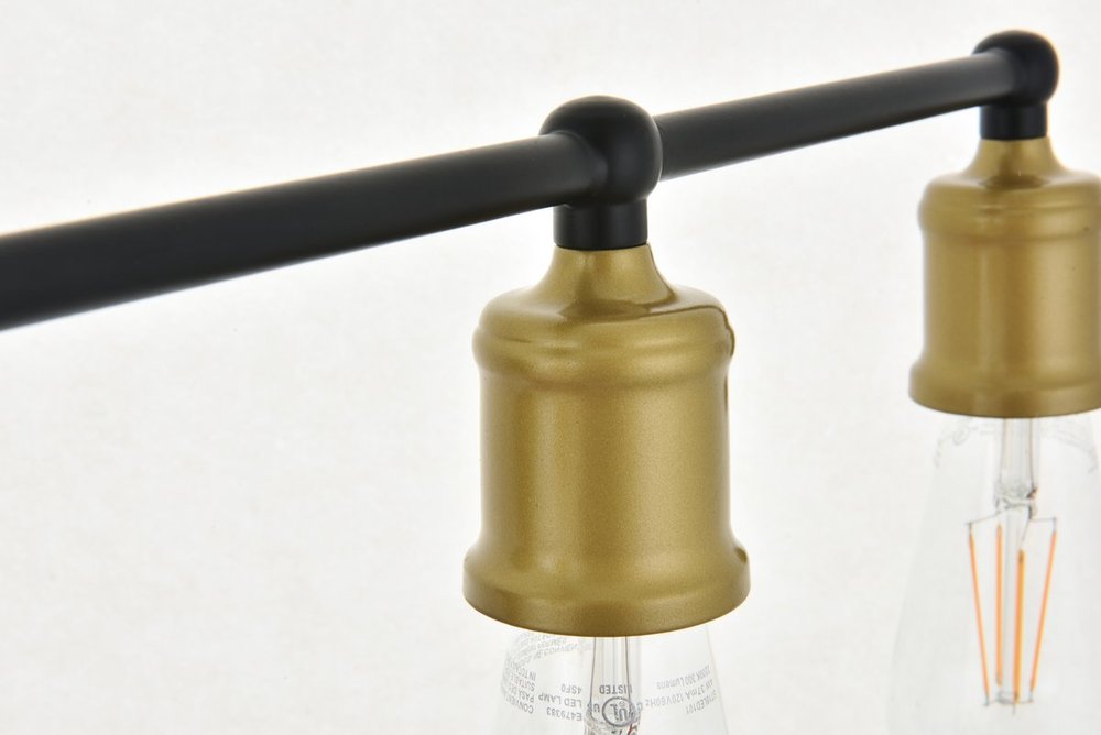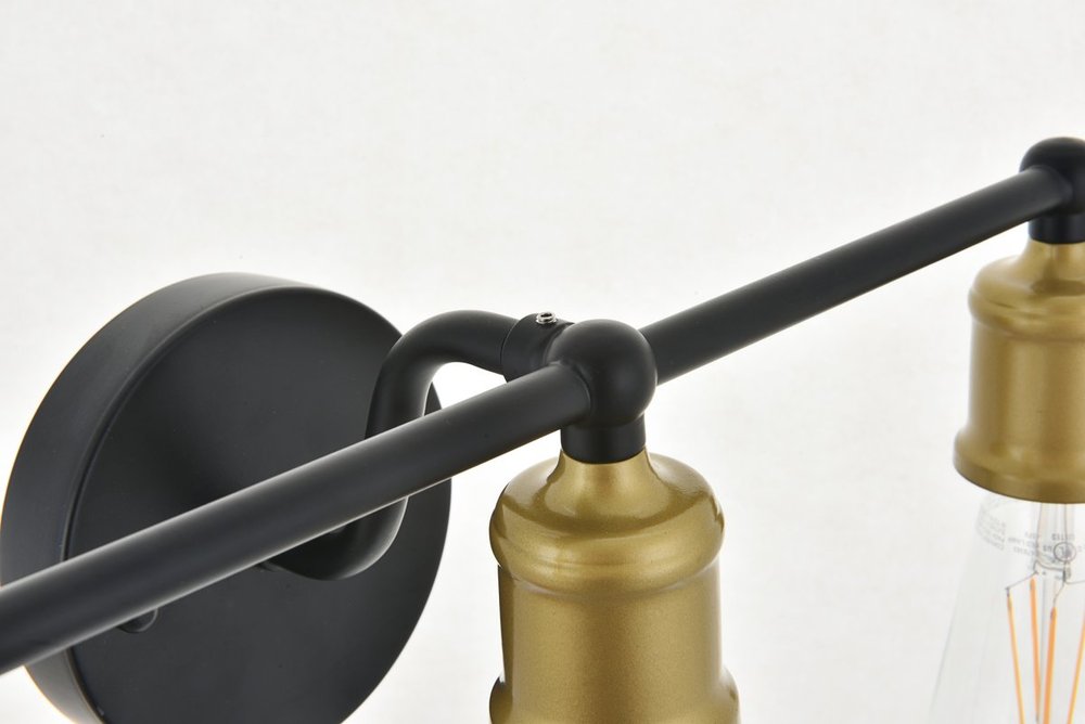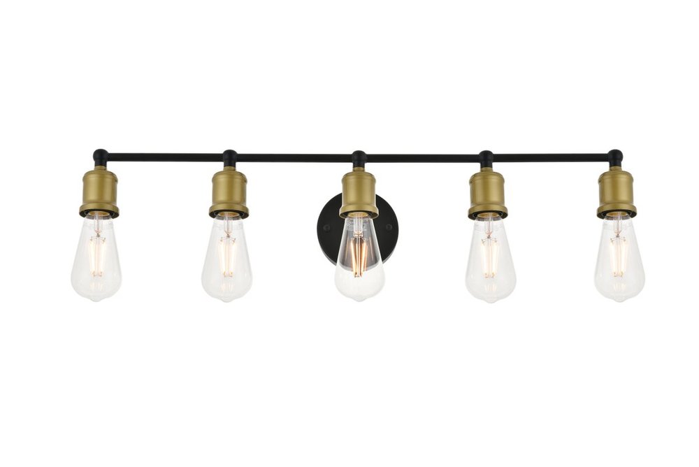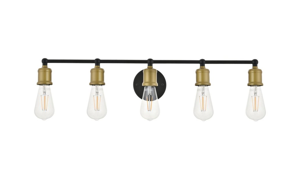 The classical elegance of the Serif collection wall lamp in a brass and black finish brings graceful allure. The arms--reminiscent of a classical font-- supports the 5 lights that emit a reassuring brilliance, and its gentle presence makes it a wonderful fixture to greet your guests at the entry way, illuminate your cabinets in the living room, or shine in the powder room.
