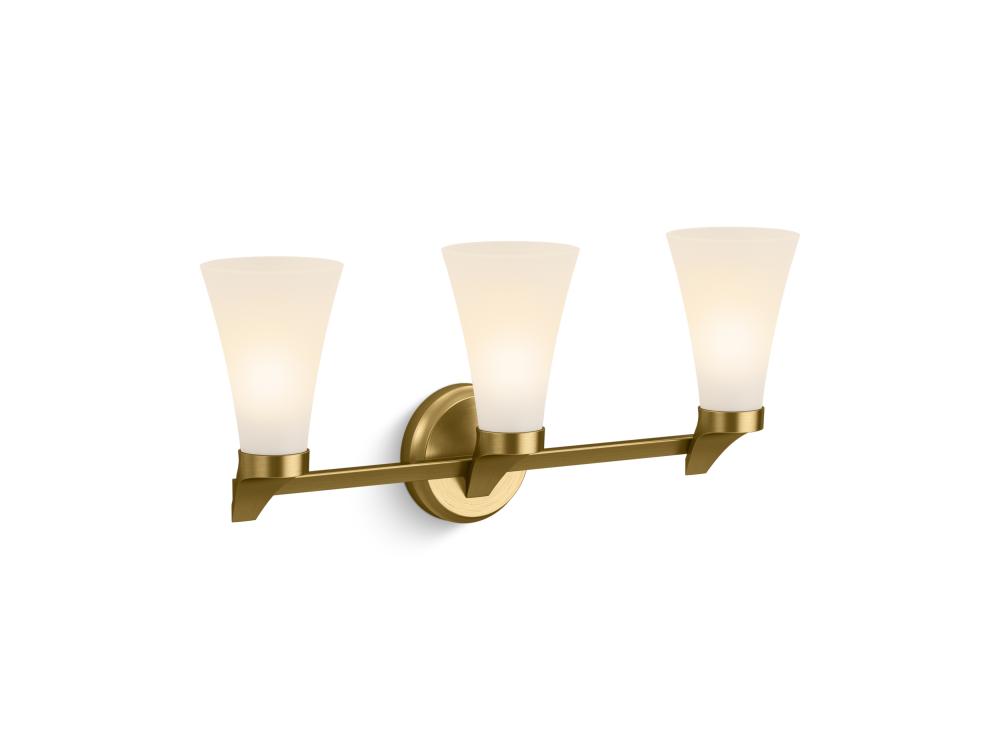 Painted glass shades perfectly diffuse the light, reducing glare in the bathroom