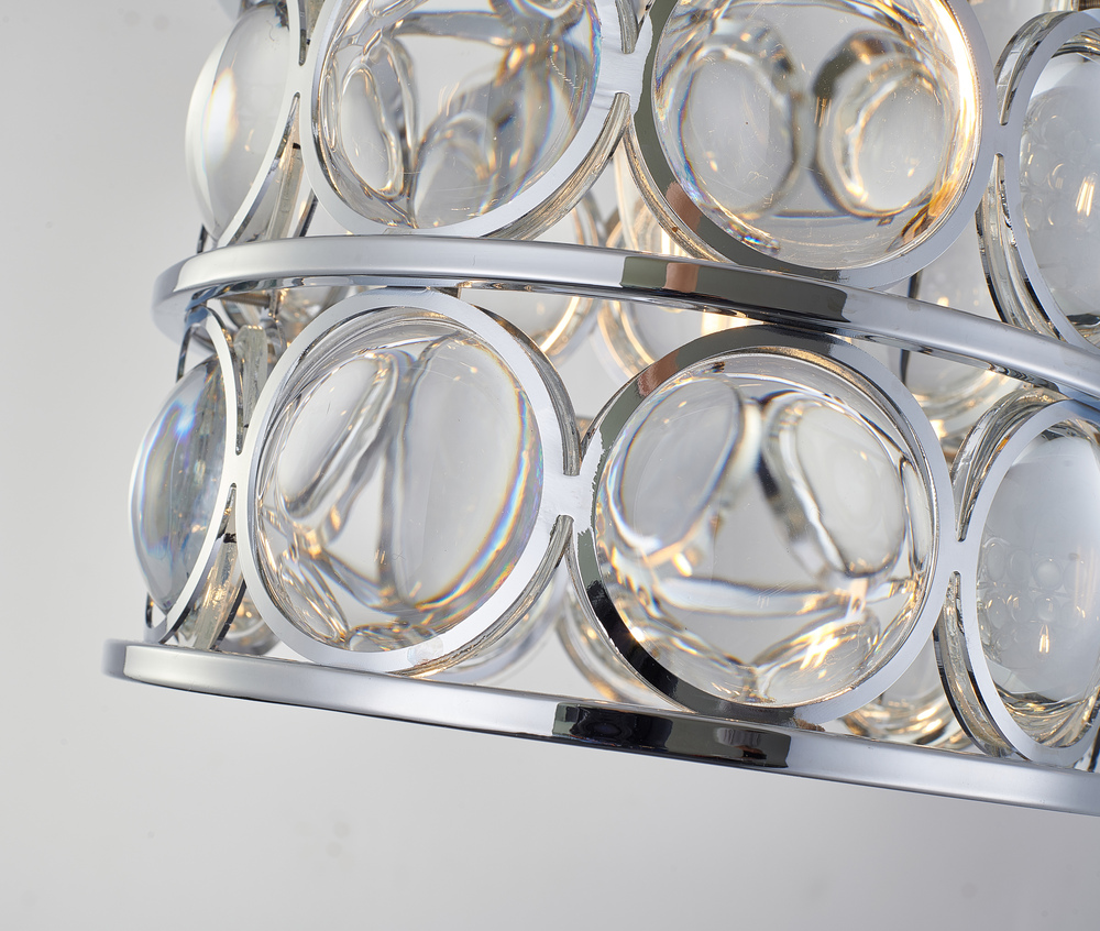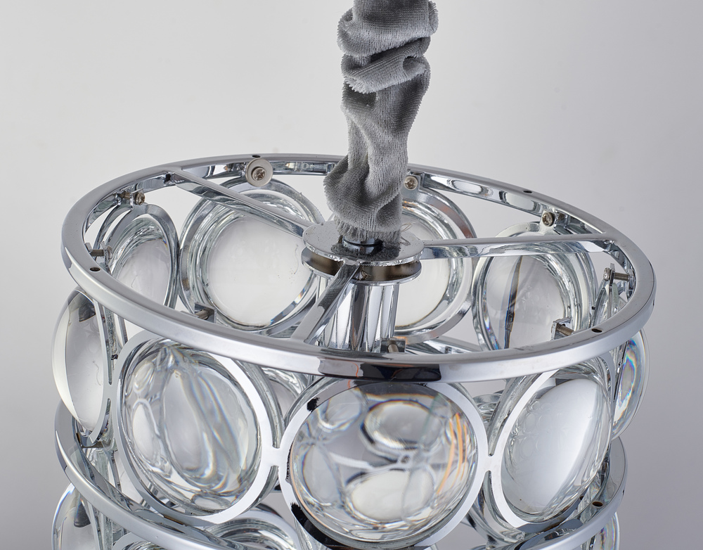 This exquisite single pendant lighting is in a chrome finish. The frame is made out of metal, and it comes with magnifying glass in clear color. The adjustable chain link makes this fixture suitable for most ceiling heights.