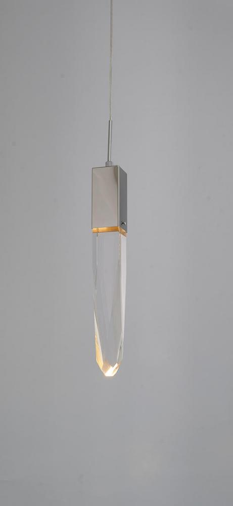 This exquisite single pendant lighting is in a chrome finish. The frame is made out of metal, and it comes with a hanging clear iceberg crystal. The length of cords can be adjustable and make this fixture suitable for most ceiling heights