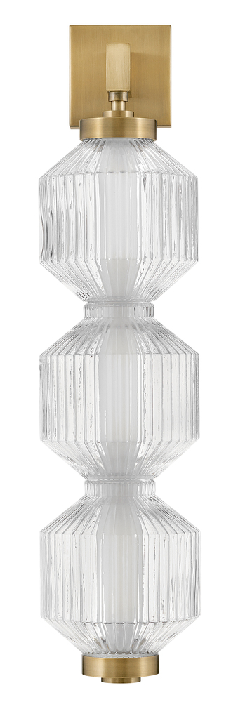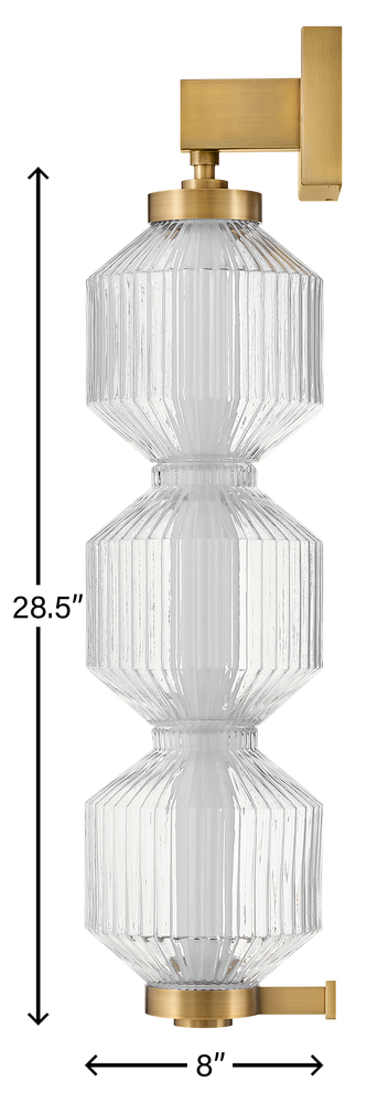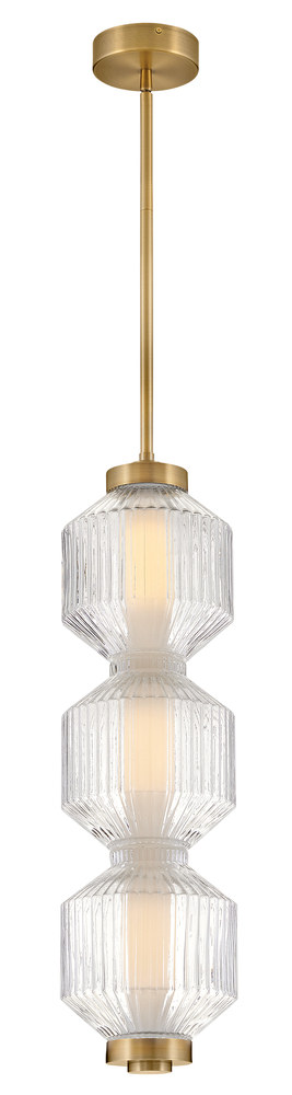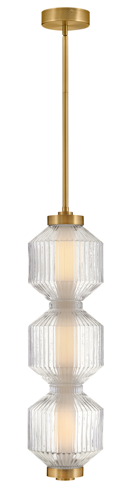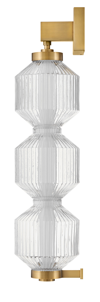 Reign's glamorous silhouette combines textural interest and transitional elements for a vibrant and versatile collection. Clear ribbed glass shades and a gleaming Lacquered Brass finish present a captivating form from any angle. Illuminated by integrated LED lighting.