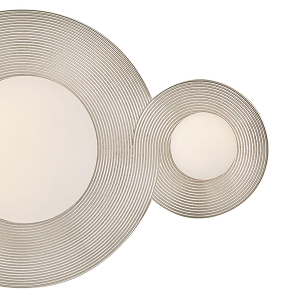 Evoking the concepts of eternity and limitlessness, Rhea’s continuously flowing loops of refined metal create a ribbed texture along its gracefully curved backplate. Dimmable, integrated LED lamping brings comfortable energy into any bathroom or small interior space. Rhea can be installed vertically, horizontally, or even as a flush mount on a ceiling.