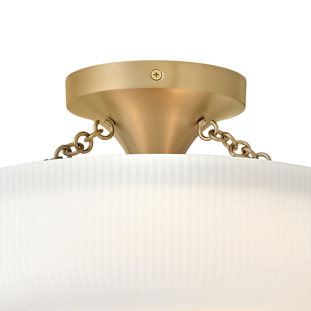 A clean design with traditional styling, Adella’s fine-ribbed glass shade creates a soft silhouette accented by fine details, delicate chains, and a sleek flared canopy. A Lacquered Brass finish complements Etched Opal or Smoke glass, accenting your living space with a distinguished aesthetic