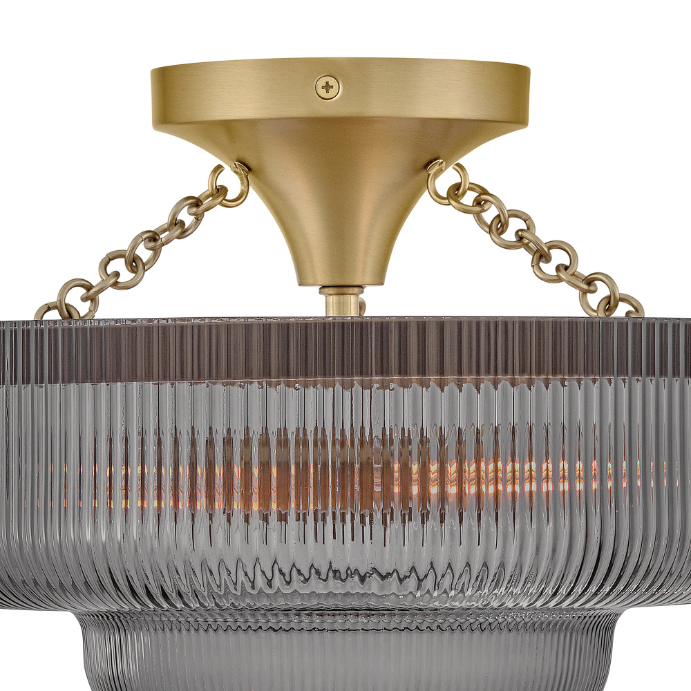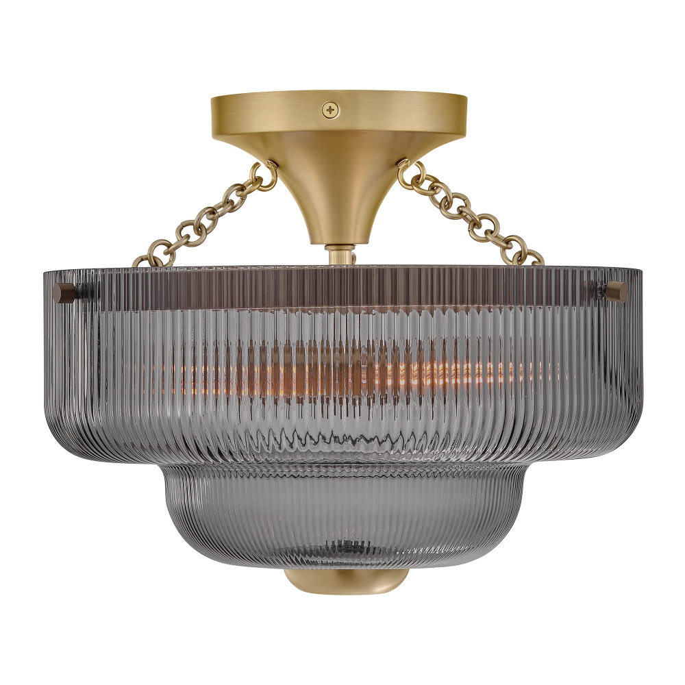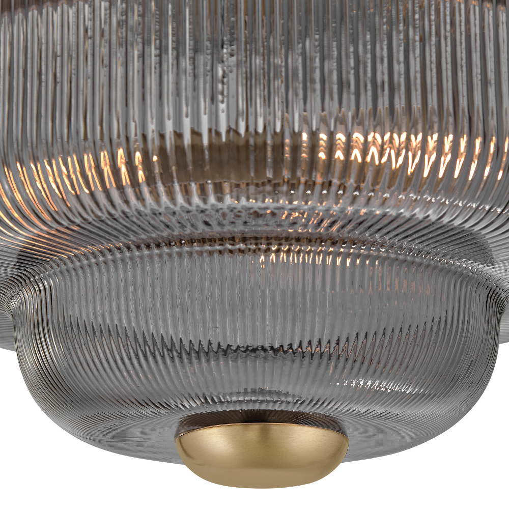 A clean design with traditional styling, Adella’s fine-ribbed glass shade creates a soft silhouette accented by fine details, delicate chains, and a sleek flared canopy. A Lacquered Brass finish complements Etched Opal or Smoke glass, accenting your living space with a distinguished aesthetic