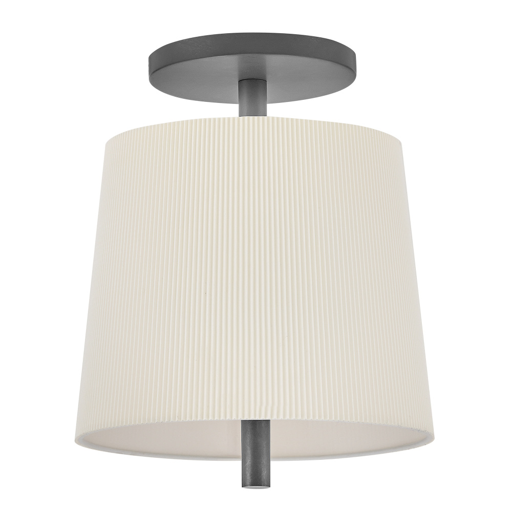 A structured design with a touch of Americana, Clive’s tailored shade features a micro-pleated texture that adds a refined feel to the slightly tapered silhouette. A slim stem grounds the off-white fabric with a contrasting Heritage Brass or Slate Bronze finish.