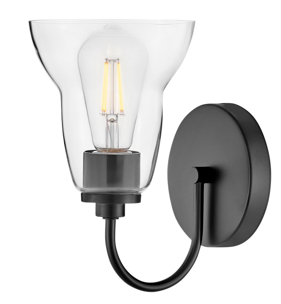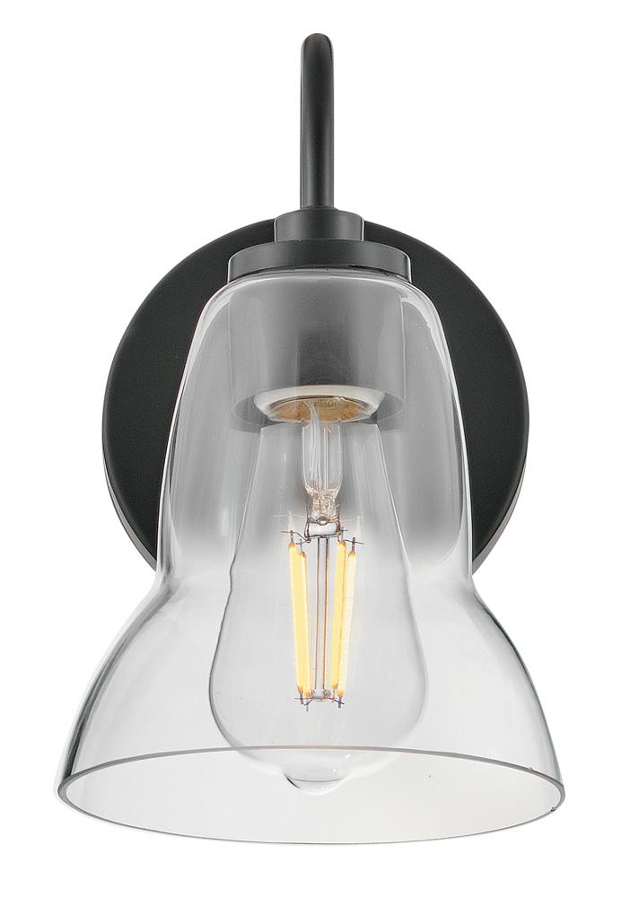 Vera’s unique, shapely form takes the traditional bell-shaped shades to a new level. Plenty of light shines up or down from the clear glass, making it a functional choice for main baths and powder rooms alike. Finished in Black or Lacquered Brass, Vera’s chic profile brings transitional style to any space.