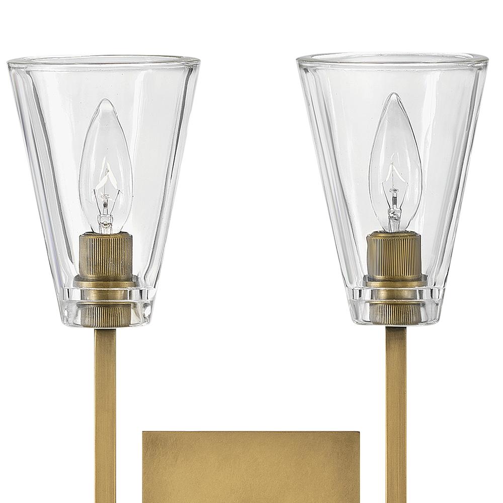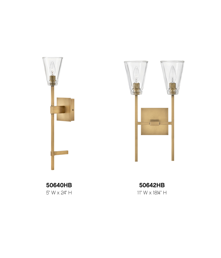 Sleek and feminine, Auden showcases a dramatic minimalist design with refined details. Thick clear glass shades gleam against elegant elongated stems and a sleek square backplate. Available in three finishes, Auden’s streamlined silhouette adds understated yet upscale sophistication to any interior space.