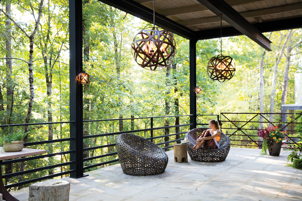 Carson features bold overlapping metal ribbons of Vintage Iron, enhancing an outdoor living area with style and substance. The handcrafted pendants combine a hint of industrial sophistication with the allure of artisan craftsmanship.