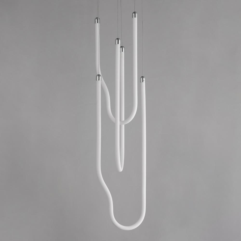 Sweeping matte white acrylic tubes encase an omnidirectional LED light source, arranged in abstract configurations inspired by solar flares. Minimal in composition yet dramatic in form, the Soleil collection offers a striking lighting solution. Available i