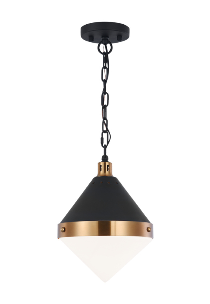 A fusion design that combines medieval style with modern elements. Sphericon is available in Matte Black with Aged Gold Brass or Matte Black with Chrome. Both colour options are complete with a clear glass shade or an opal glass shade. LIGHTBULBS NOT INCLUDED
