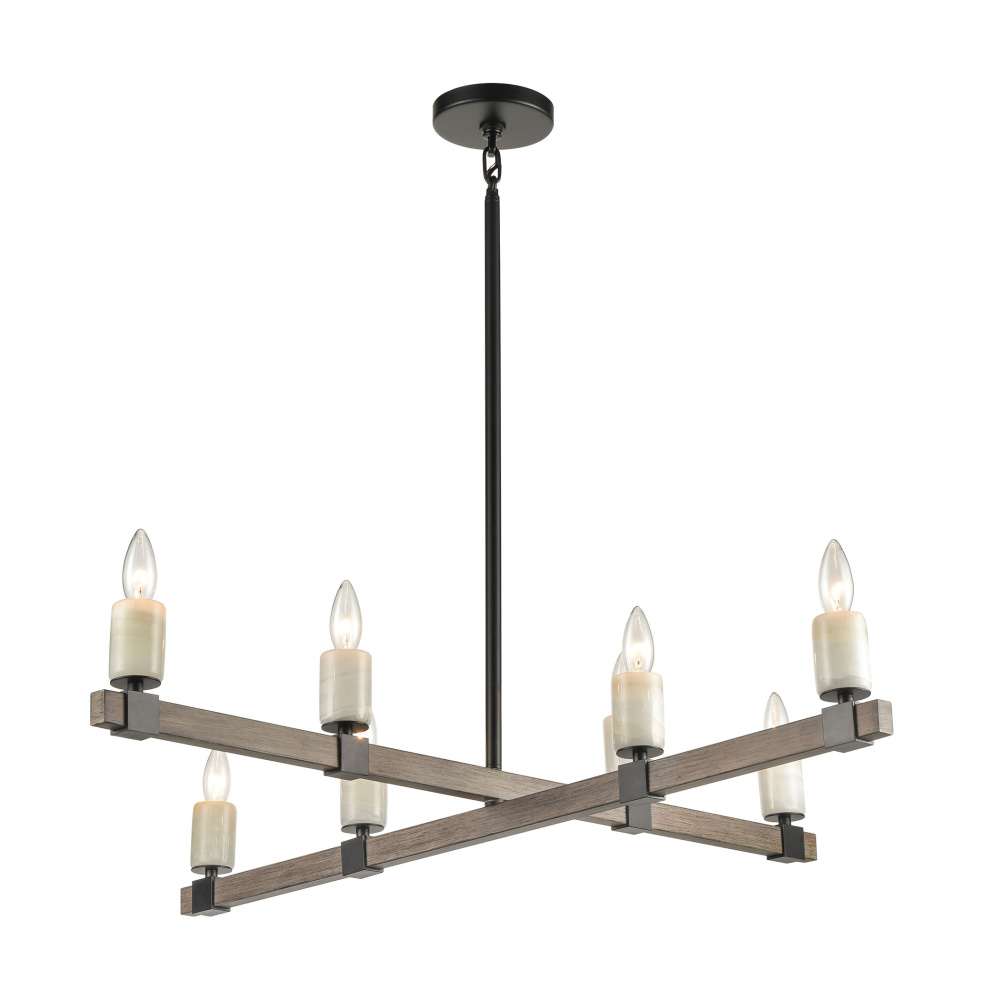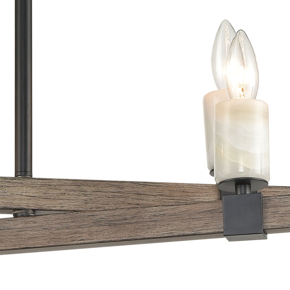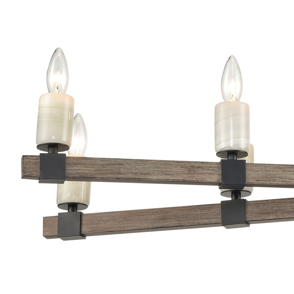 The Stone Manor collection showcases polished stone candles and attractive clasping hardware. The matte black finish is warmed by the aspen finished frame.