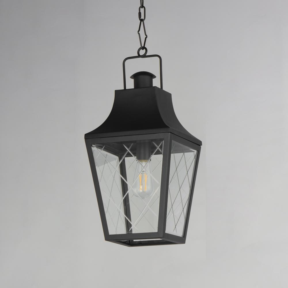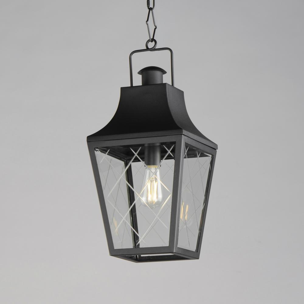 These charming cottage style lanterns feature unique cross-etched glass panels that are Clear and beveled along their edges. Additional design details such as whimsical loops above a chimney element add to the product's delightful appearance. Finished