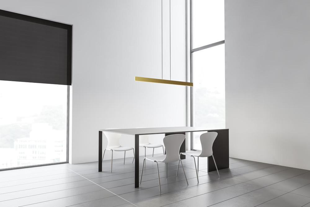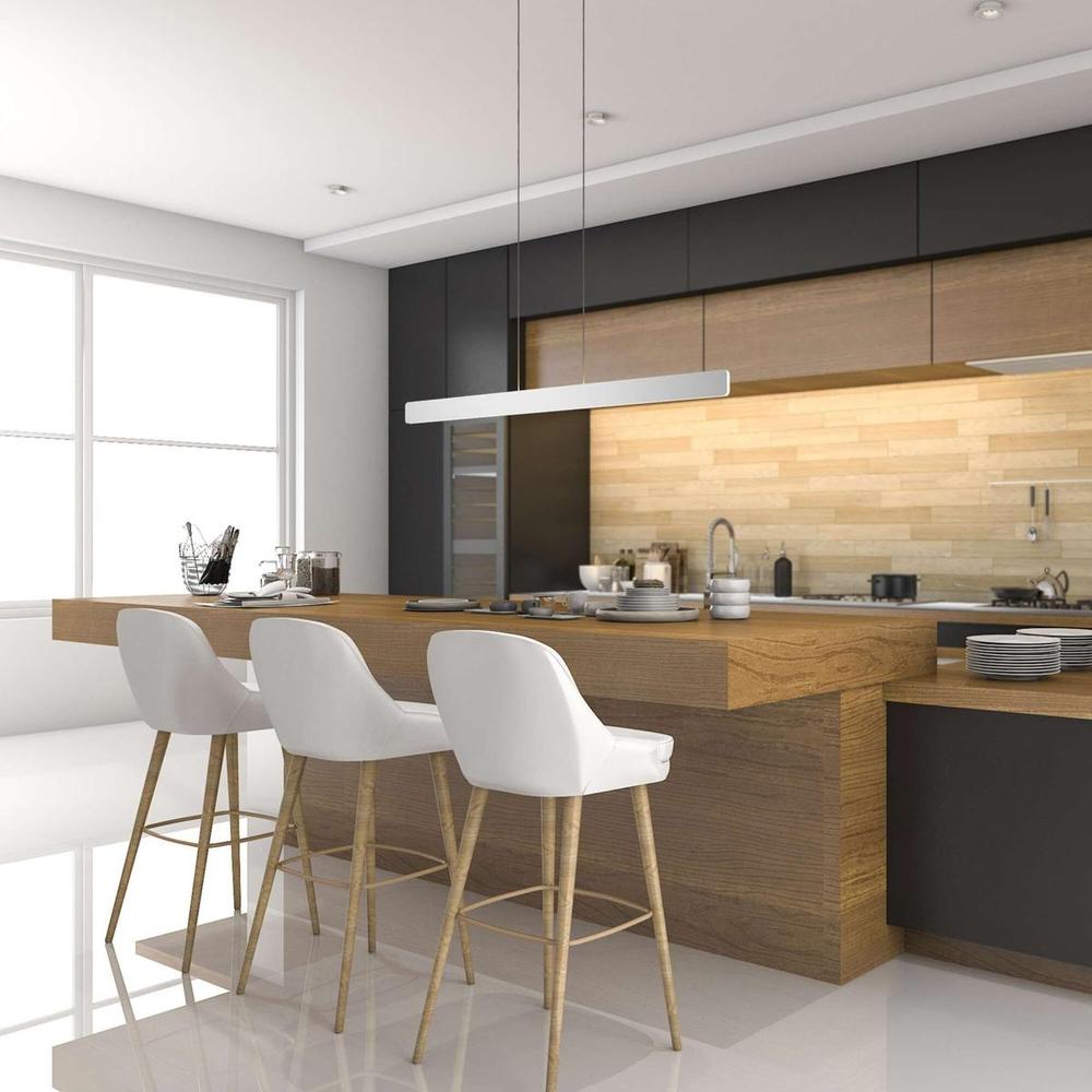 The exquisite Sub Pendant boasts a minimalist profile and emits a soft, warm glow. A continuous line of LED light wraps around the entire piece, allowing this pendant to function as both an ambient light and task light for surfaces below. The barely-there suspending wires (up to 10') and canopy match the silver finish and complete the distinguished profile of a modern classic.
