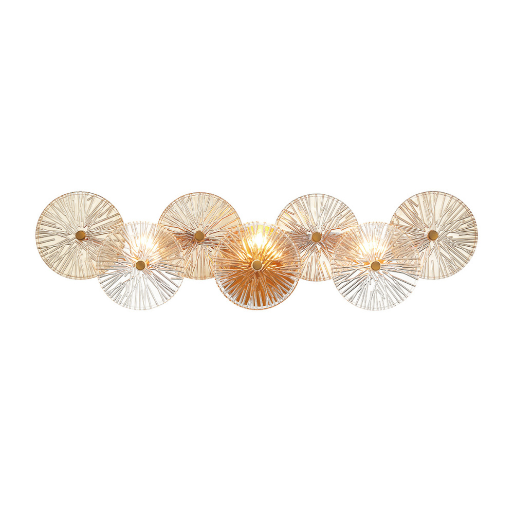 Grand, robust detailing showcase exemplary glasswork. The pressed ribbed glass are each handmade creating unique pieces. Intricate detailing and naturally tinted glass further add to its unique characteristics.