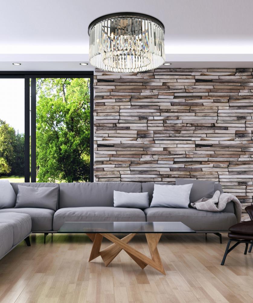 Timeless splendor and modern refinement are brought together in flush-mount Sydney fixtures. Dazzling in dining rooms, staircases, or hallways, the Sydney collection flaunts stunning tiers of royal-cut crystals in clear, golden teak, or Silver shade. A circular Matte Black or polished-nickel finished steel frame adds understated charm to this stunning flush-mount lamp.