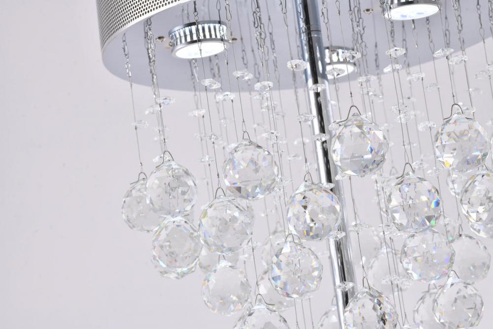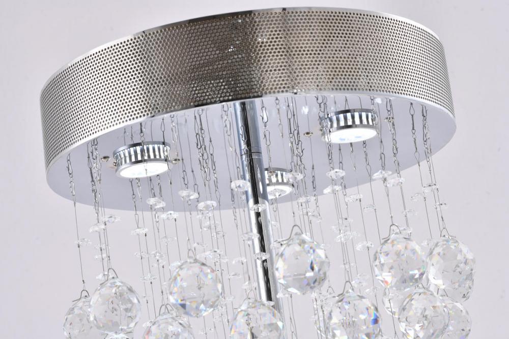 This exquisite table lamp is in a chrome finish. The frame is made out of metal, and it comes with clear hanging crystals. Three GU10 bulbs (sold separately) can provide enough illumination in any rooms.