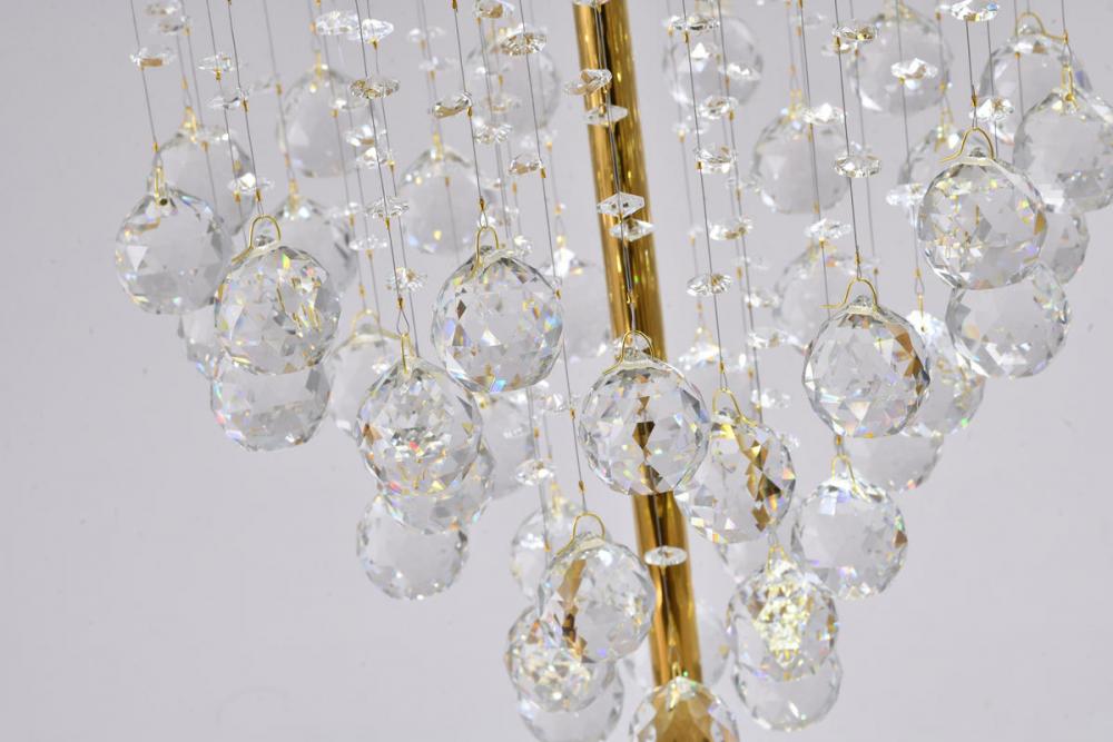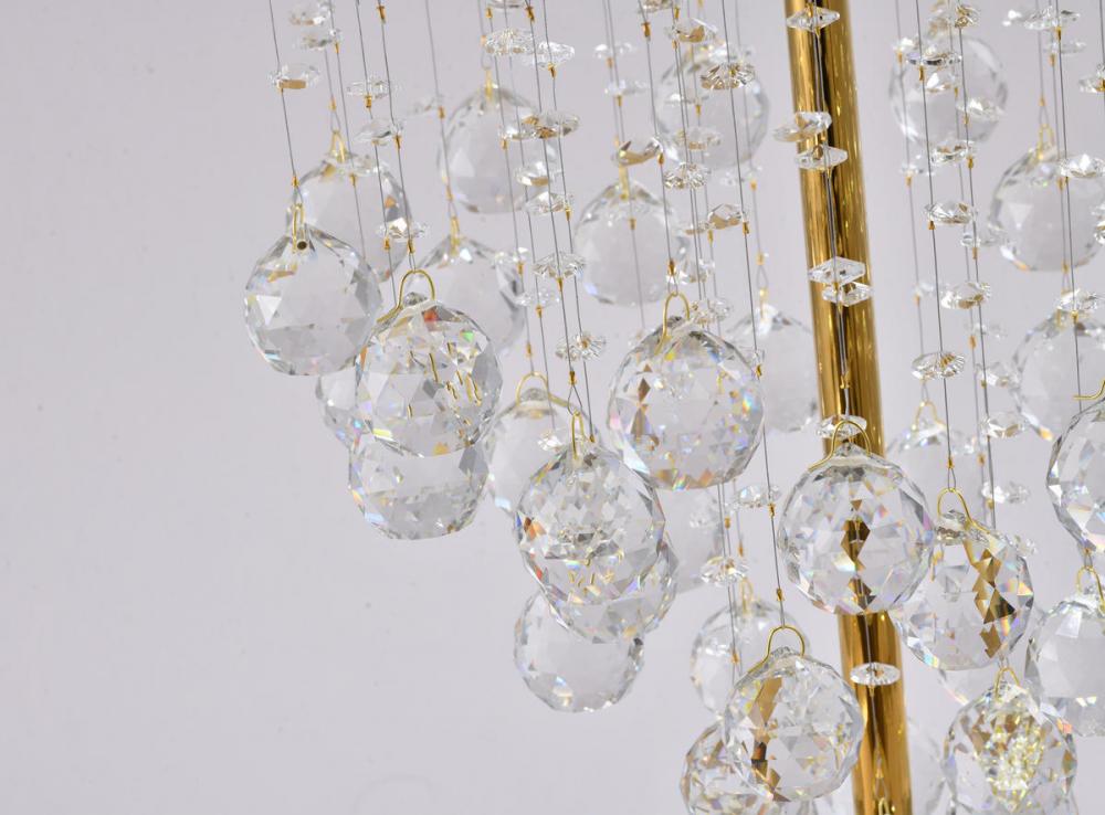 This exquisite table lamp is in a gold finish. The frame is made out of metal, and it comes with clear hanging crystals. Three GU10 bulbs (sold separately) can provide enough illumination in any rooms.