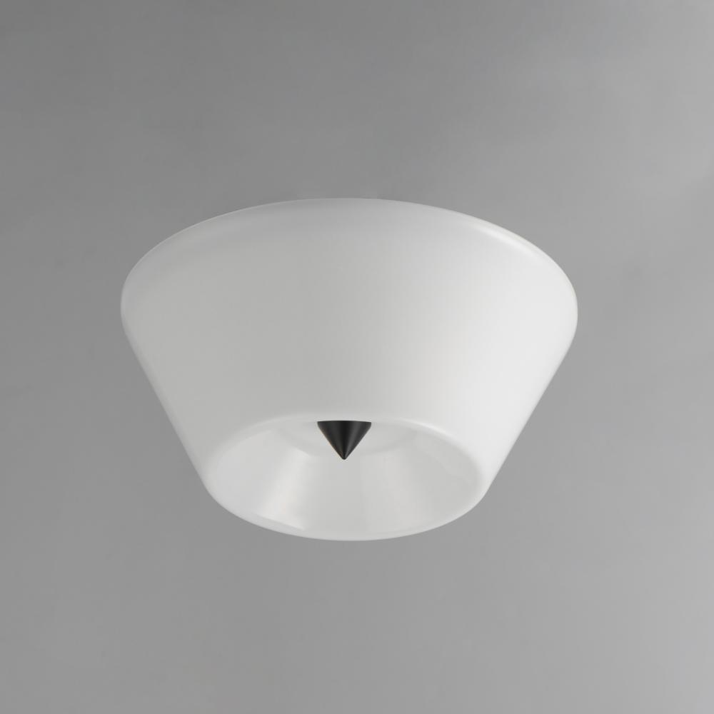 Accentuating the cone shape, this LED surface mounted fixture features a tapered glass shade and is supported by a conical finial in complementary finishes. Available in Polished Chrome, Matte Black, or Natural Aged Brass this simple design adds flair to a