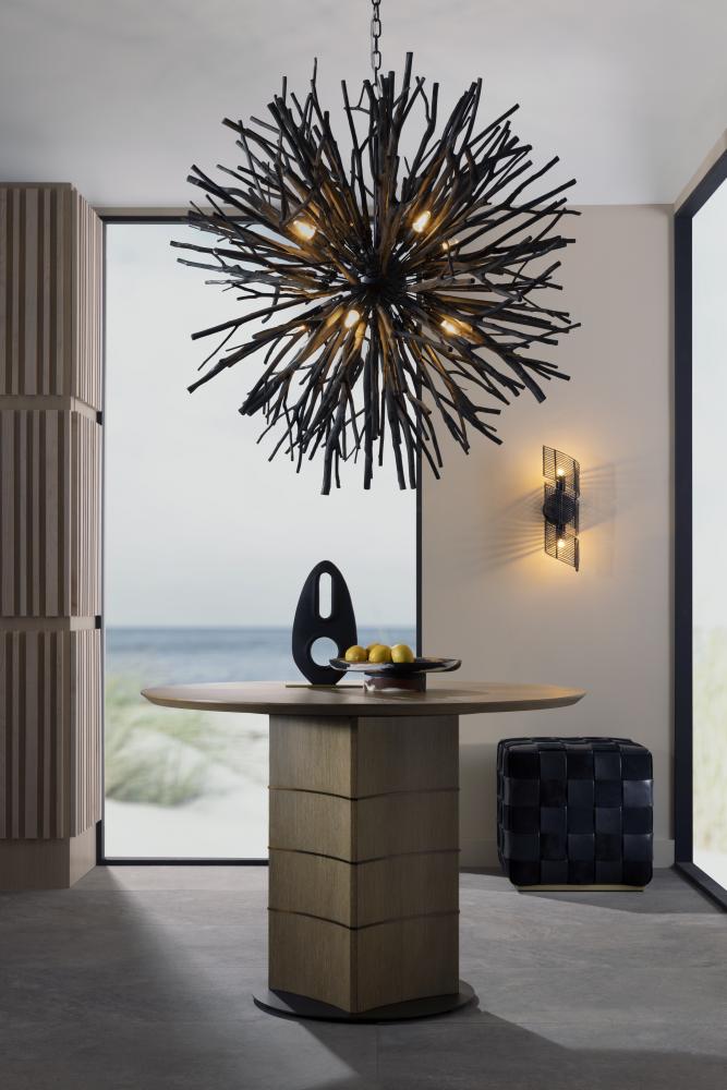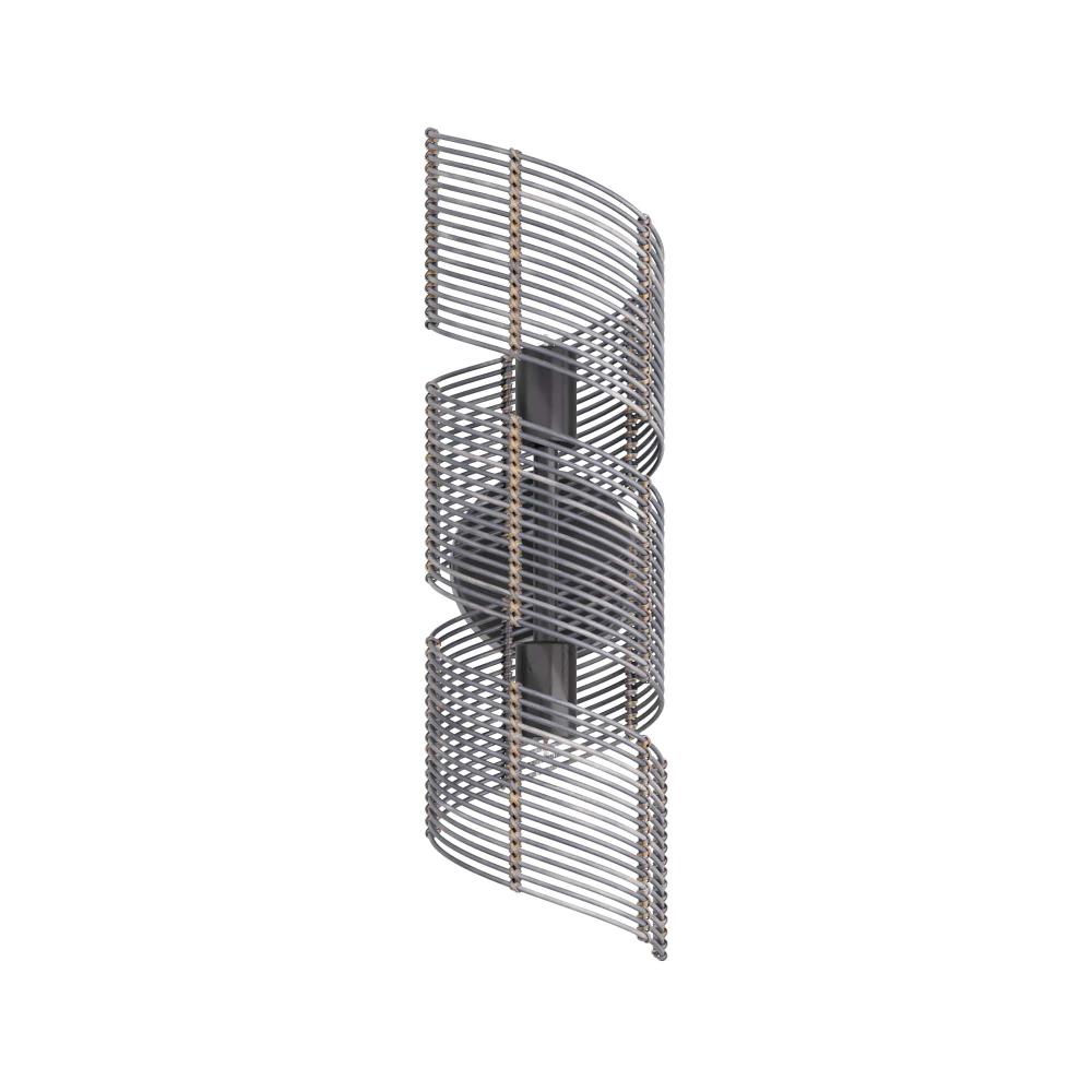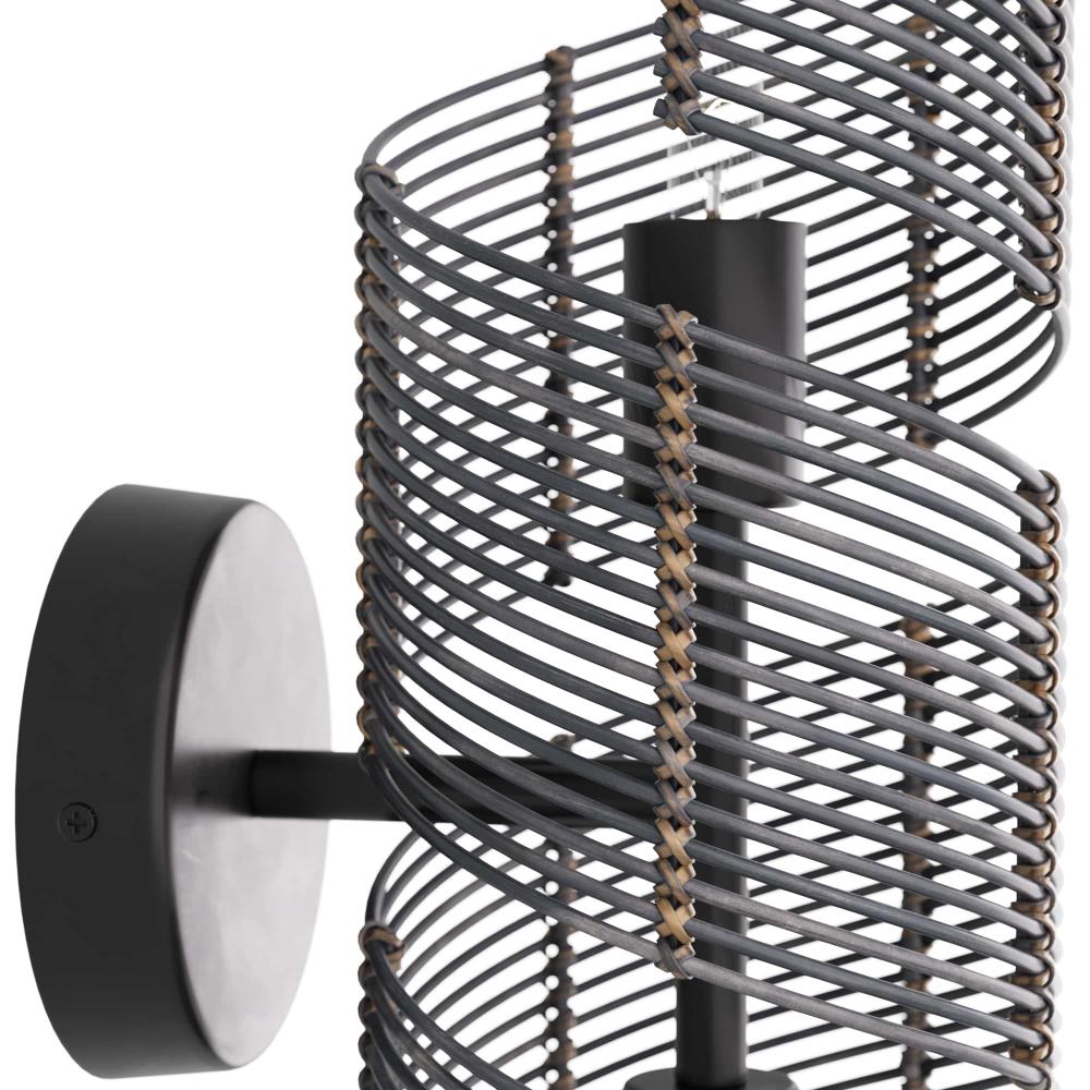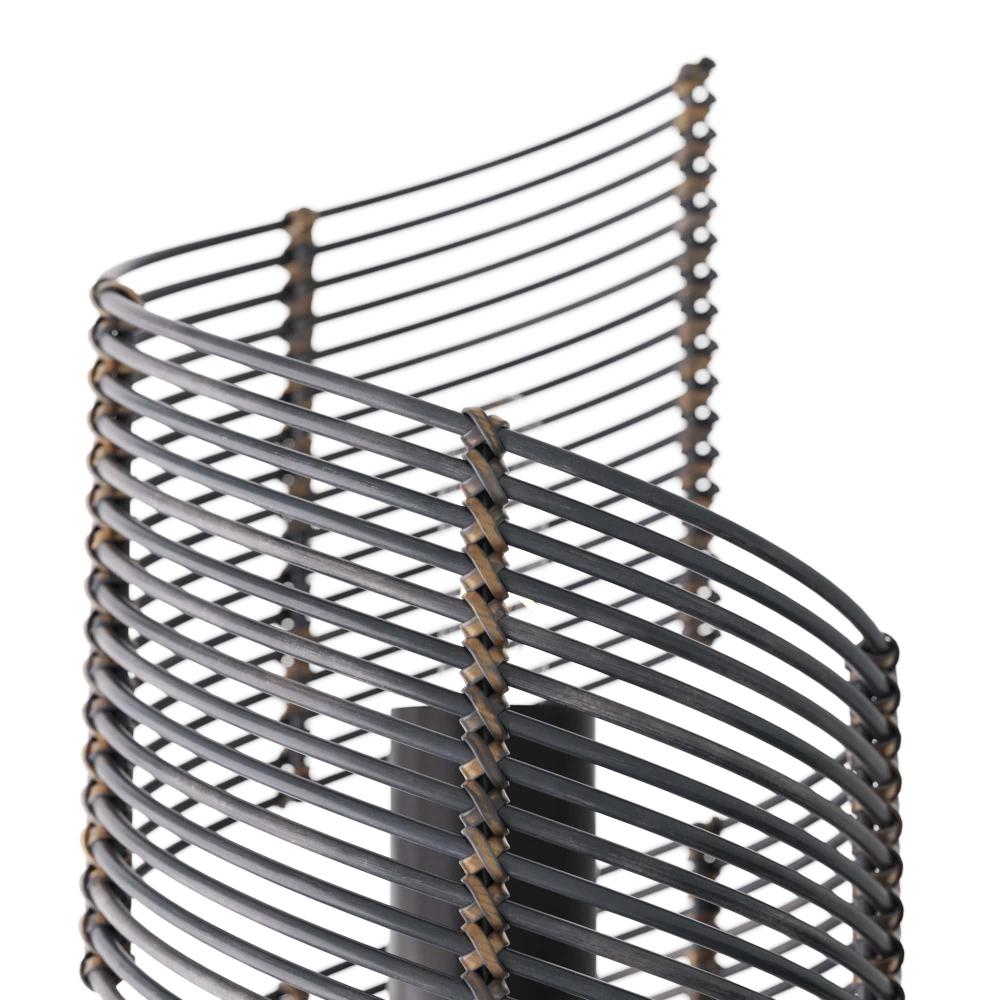 THE TAMARA SCONCE ADDS A LAYER OF TEXTURE AND MOVEMENT, WHILE PROVIDING SOFT ILLUMINATION. CRAFTED IN A SPIRALING RIBBON OF DARK GRAY-STAINED BURI MIDRIB, THE WALL LIGHT OFFERS AN ORGANIC MODERN TWIST. THE SCONCE IS FITTED WITH CANDLE HOLDER THAT HOLDS A CLEAR TUBULAR BULB ON EACH END, DIRECTING LIGHT ABOVE AND BELOW. FINISH WILL VARY.