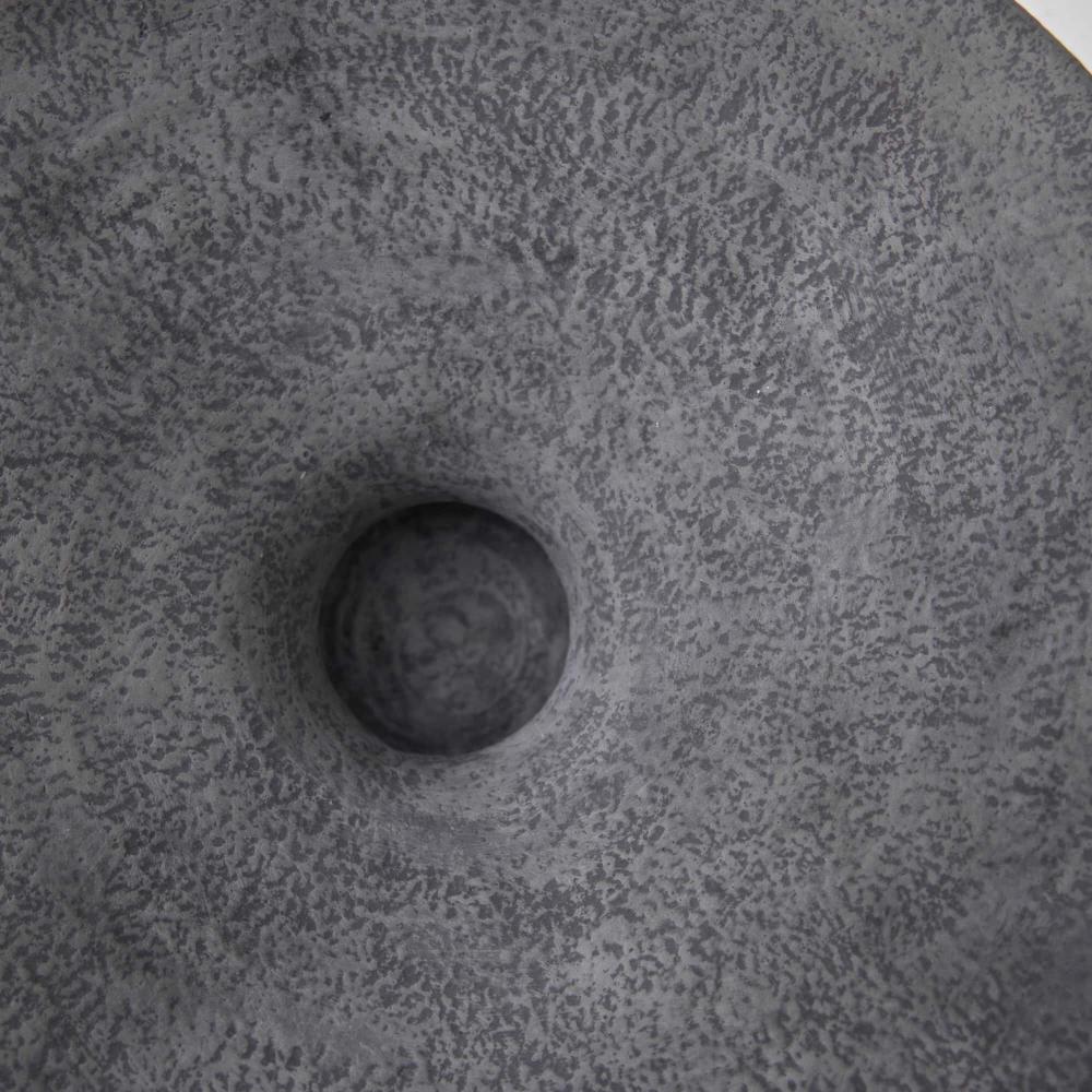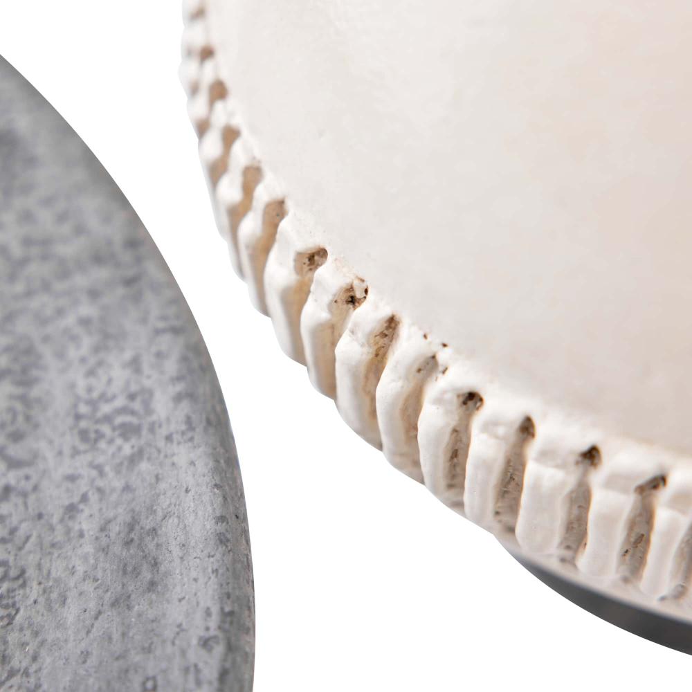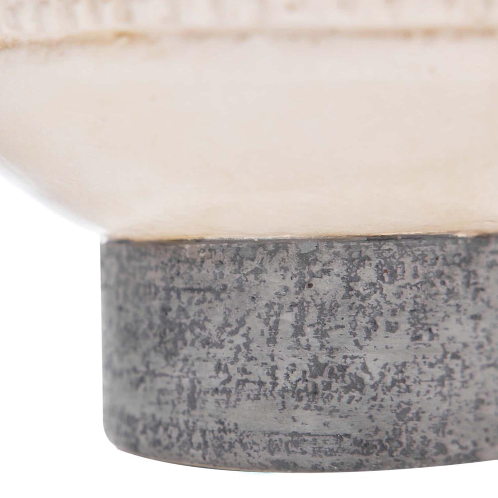 OUR TWO-TONE TAZA CENTERPIECE AND VASE SET BESTOWS AN ARTISANAL CHARACTER TO ANY TABLETOP. THE PAIR IS DESIGNED IN CONTRASTING GRAPHITE AND IVORY TERRACOTTA WITH OPPOSING MATTE AND GLOSS FINISHES. CARVED, TEXTURED BANDS, REMINISCENT OF TRAMP ART, DECORATE EACH PIECE. FINISH WILL VARY.