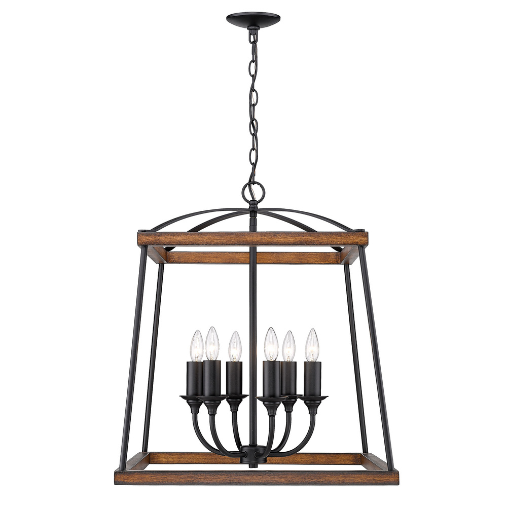 With authentic wood accents and tapered square silhouettes, Teagan is the epitome of contemporary rustic charm. Offered with multiple wood finish options, this collection is perfect for traditional to modern decors. The lightly textured Natural Black finish on the frame is versatile and contrasts the lighter wood stains. The Teagan Collection enhances the casual elegance of country cottage and modern farmhouse styles. This 6-light chandelier creates a stylish focal point with warm ambient lighting that is perfect for intimate living and dining areas or task lighting.