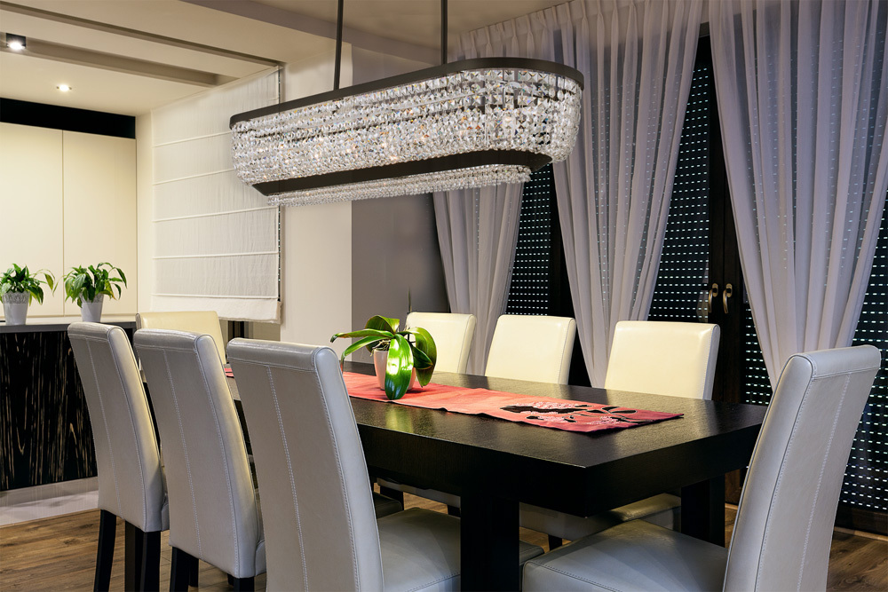 The Terzo Collection features a traditional crystal framework with a modern twist. The Matte Black (052) frame stands out beautifully between prismatic crystals.