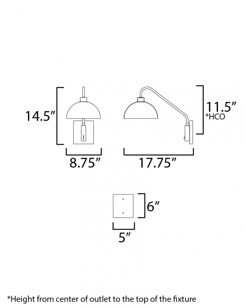 Dome shaped shades in Matte Black contrast Natural Aged Brass accents. Available in flush mount, bath vanity, and swing arm wall sconce configurations. This collection delivers an approachable, modern design that pairs well with transitional design aesthet