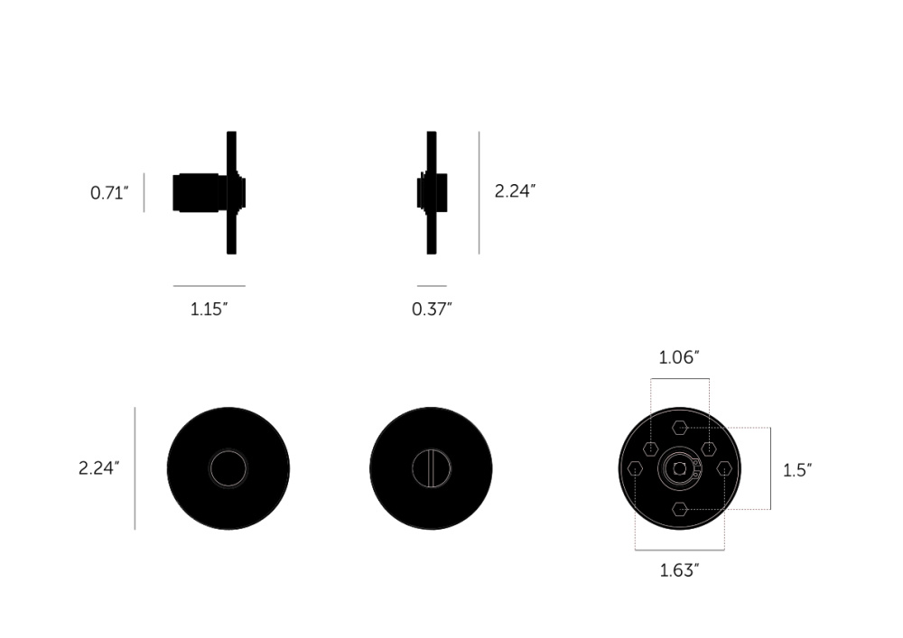 An indoor thumbturn lock made from solid metal and featuring a solid knob with tactile diamond-cut linear knurling. Works on all internal bathroom and toilet doors and includes a safety coin-release. It looks sublime combined with our matching linear door handles.