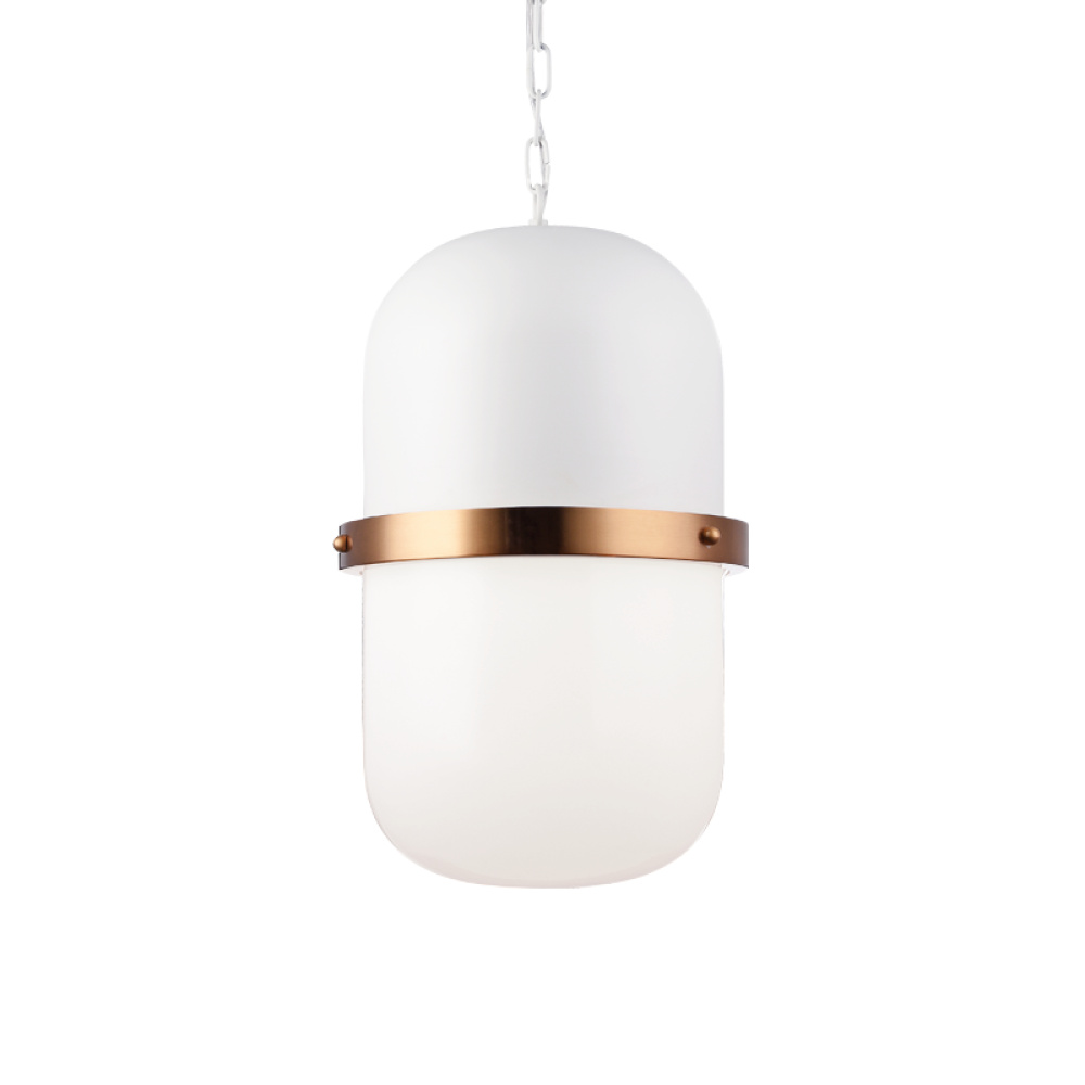 The Tillie series are stylish capsule inspired pendants. Comes in a White and Matte Black finish with Aged Gold Brass detailing that connects the Clear Glass or Opal Glass bottom.These versatile pendants are suitable for all spaces. Available in 2 sizes.