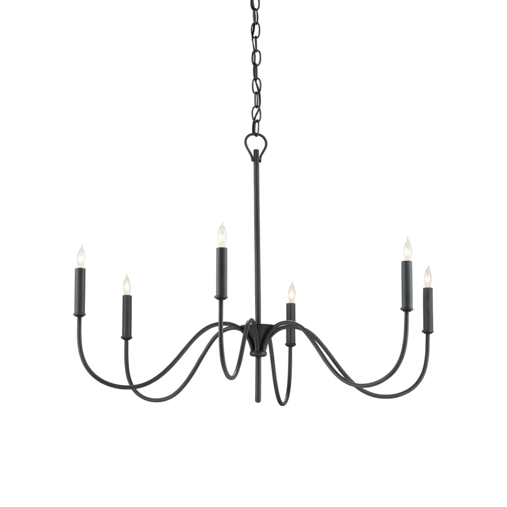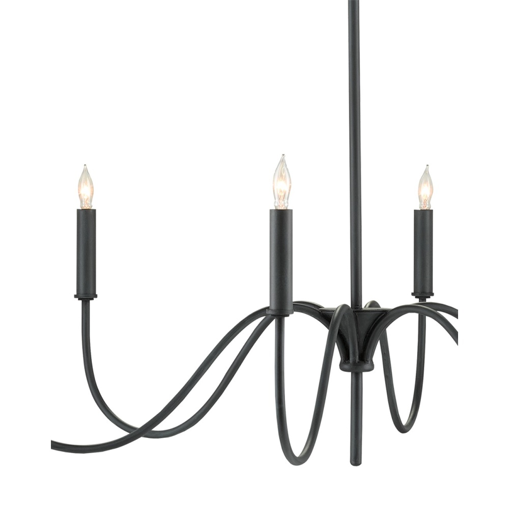 A nod to Early American style, the Tirrell Small Chandelier has graceful arms that arc upward to hold its candle sleeves with simple dignity. The black chandelier is made of wrought iron in an antique black finish. Adjustable from 30.5" to 98.5" with use of included chain/rod kit/cable. If your space calls for a longer drop, additional chain/rods/cable is available for purchase.