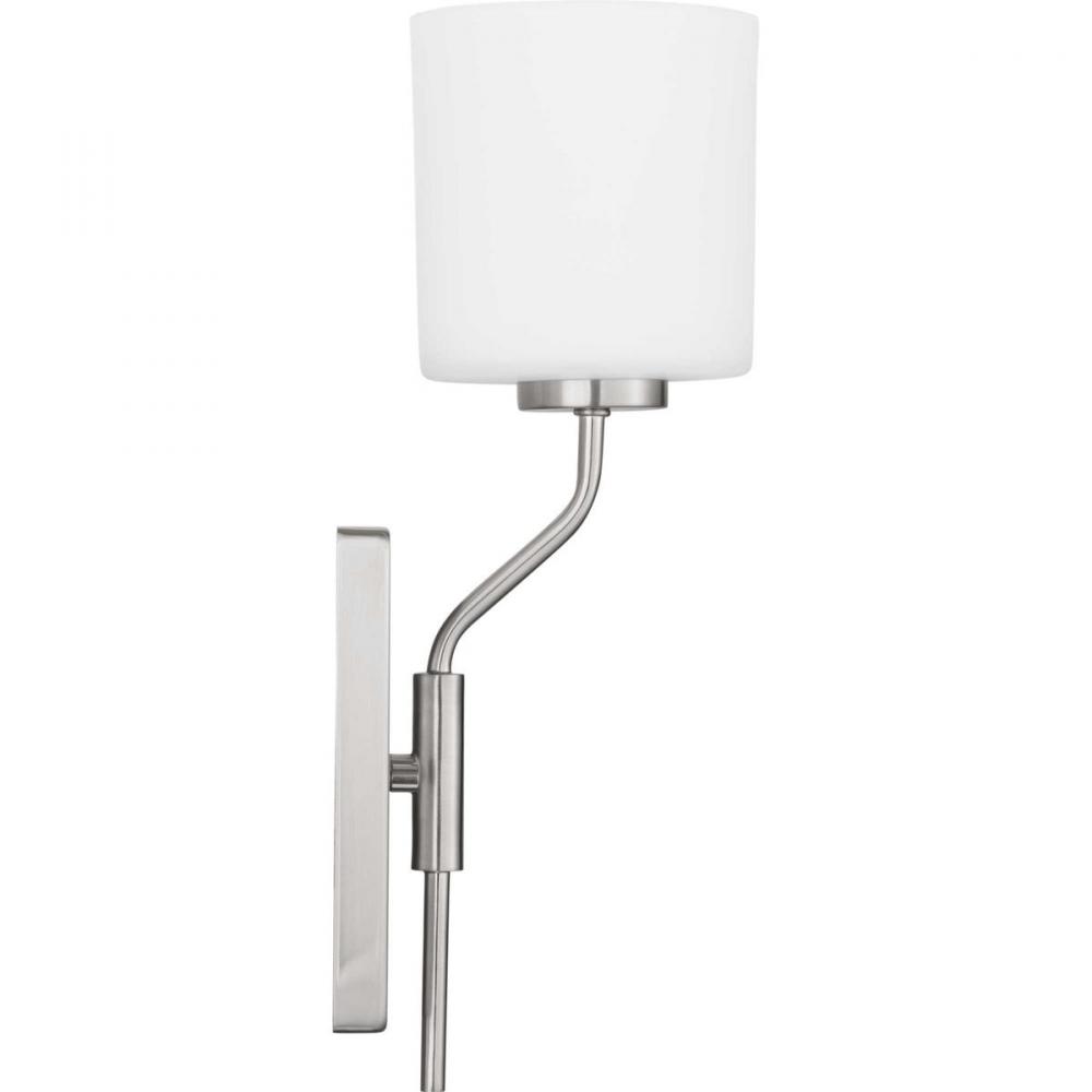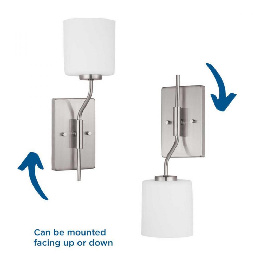 Ideal for a bathroom, dining room, hallway, or foyer;Perfect for modern and urban industrial style settings;Beautiful brushed nickel finish;Elegant etched white glass shade;Compatible with standard wall dimmer;Use 1 medium base bulb that is sold separately
