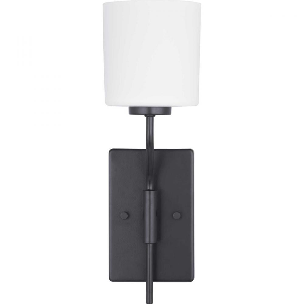 Ideal for a bathroom, dining room, hallway, or foyer;Perfect for modern and urban industrial style settings;Classic matte black finish;Elegant etched white glass shade;Compatible with standard wall dimmer;Use 1 medium base bulb that is sold separately (100