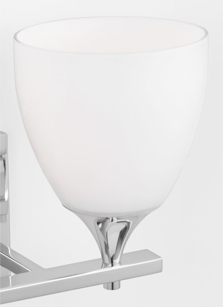 Made to coordinate across a broader range of bath hardware and design styles, this light breathes new life to its traditional shape with milk glass shades and striking, modern finishes