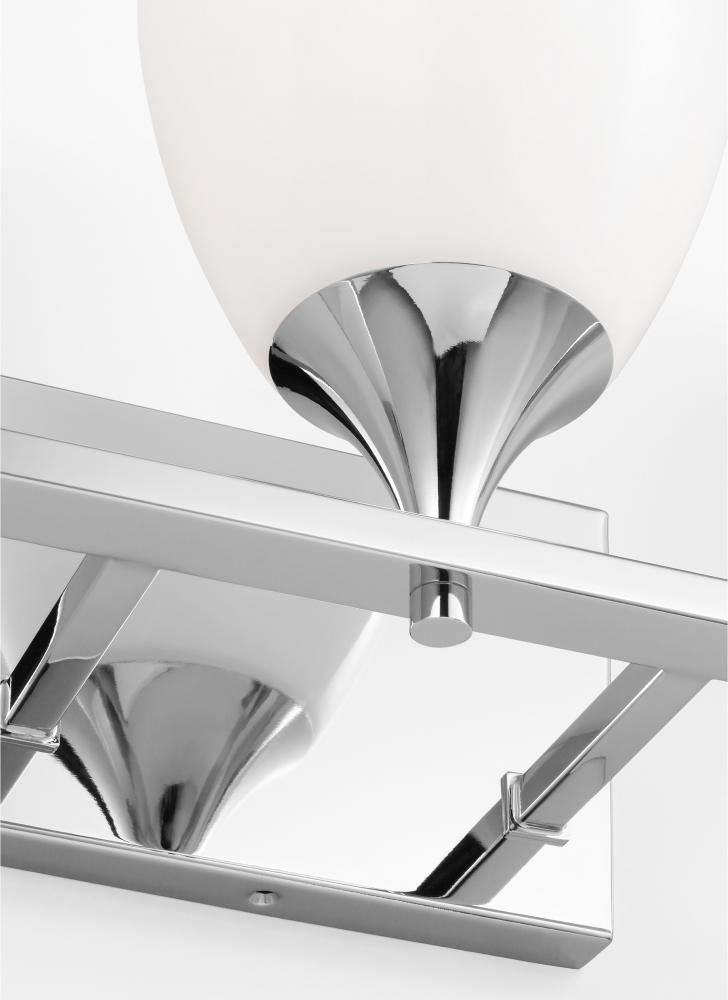 Made to coordinate across a broader range of bath hardware and design styles, this light breathes new life to its traditional shape with milk glass shades and striking, modern finishes