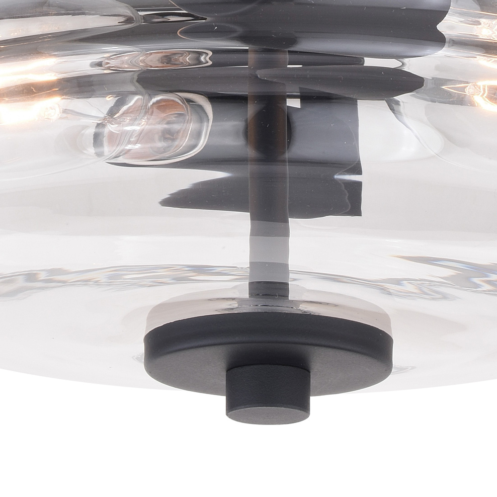 Clean retro lines define this beautiful collection called Toledo. Notes of industrial and farmhouse tradition are defined with the elegance of clear blown glass. Combine that with a vintage Edison style filament bulb to complete the look. This flush mount ceiling light is ideal for hallways, living rooms, bedrooms, entryways or utility rooms.
