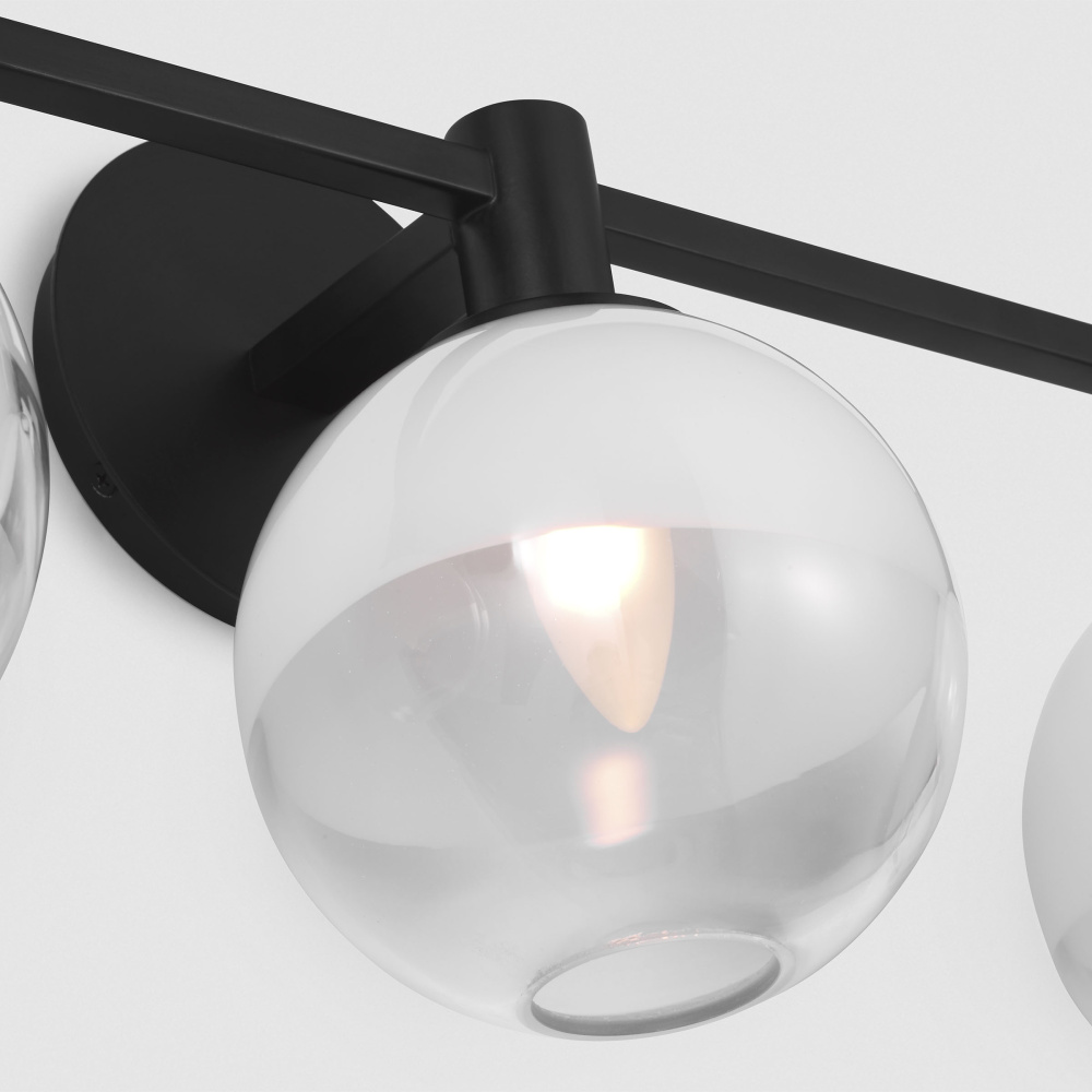 The Torian collection by Sean Lavin draws inspiration from sculptural hanging mobiles. Multiple arms with fabric cords suspend beautiful glass globe shades with an ombre effect, transitioning from milk to etched clear glass. Ideal for entryways and dining rooms, the Torian chandelier will lend a sophisticated artistic touch to interior spaces.