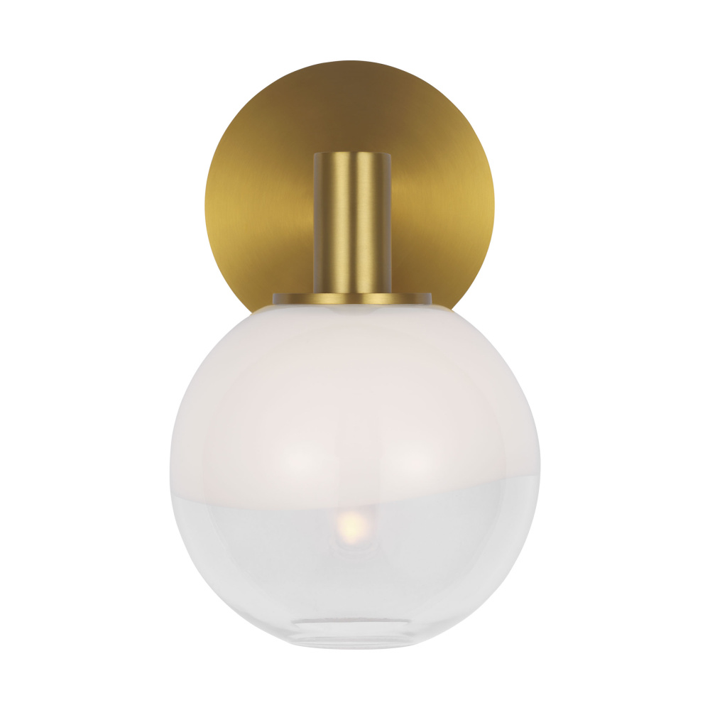 Crafted with Steel in a Burnished Brass finish with milk / clear glass mix glass shade