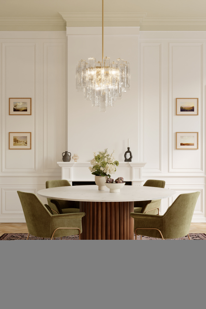 The Torvento pendant softly elevates any room with its transitional character.