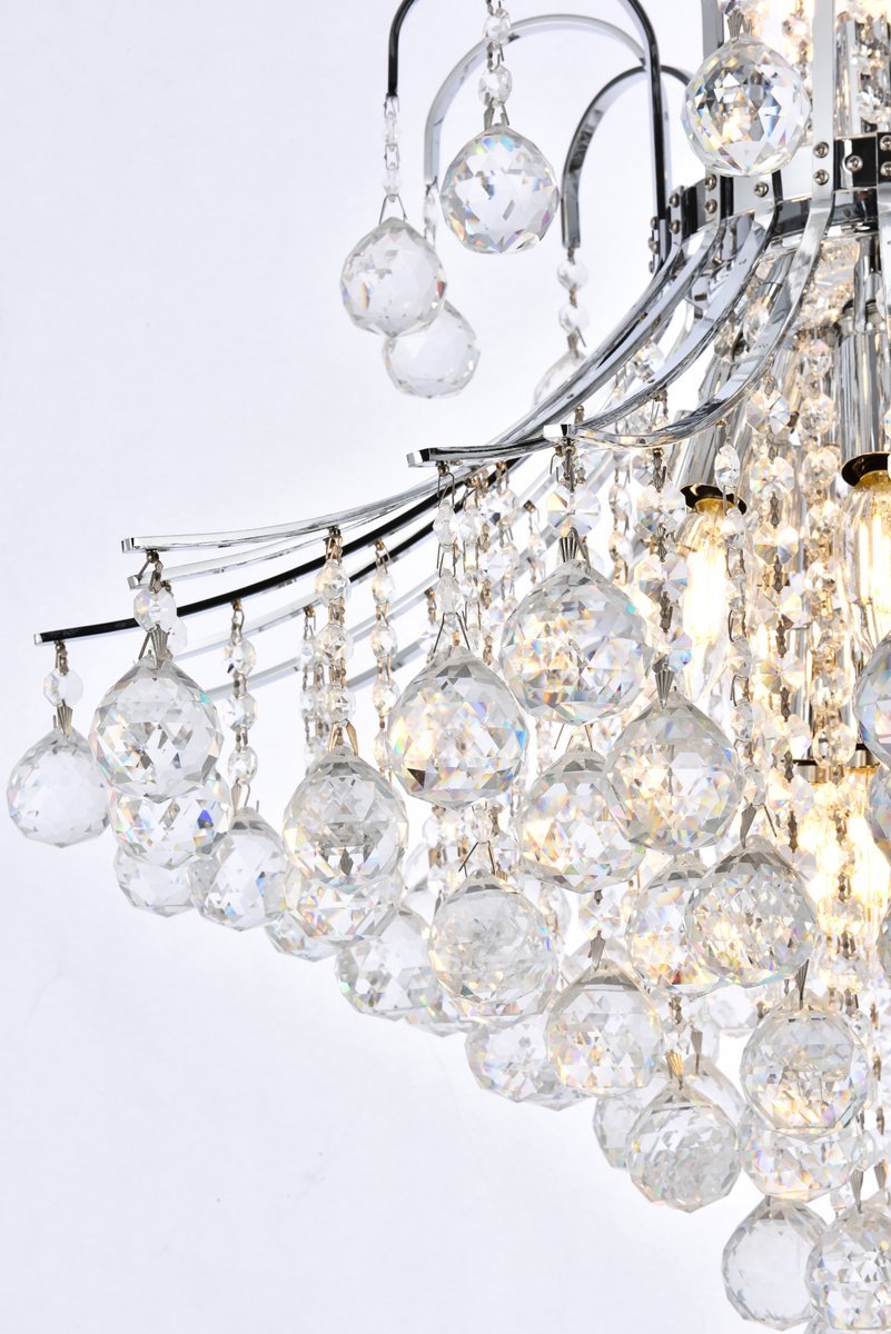 A treasure trove of glittering crystals, Toureg collection pendant lamps are generous with their sparkle. Stately curved steel arms and frame form an opulent flared shape available in chrome or gold finishes. Faceted clear crystal balls and crystal octagons offer a variety of options to choose from. Certain to be the center of attention in the dining room, living room, bedroom, or stairwell.