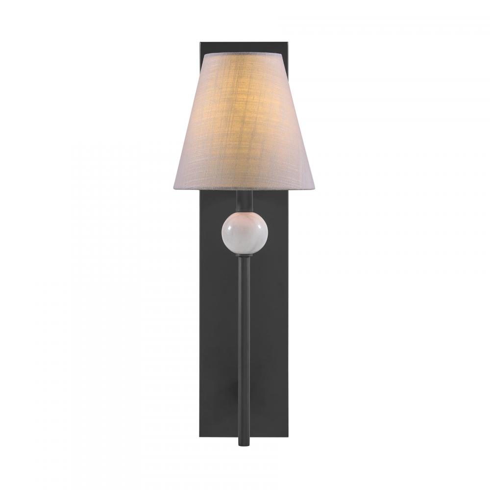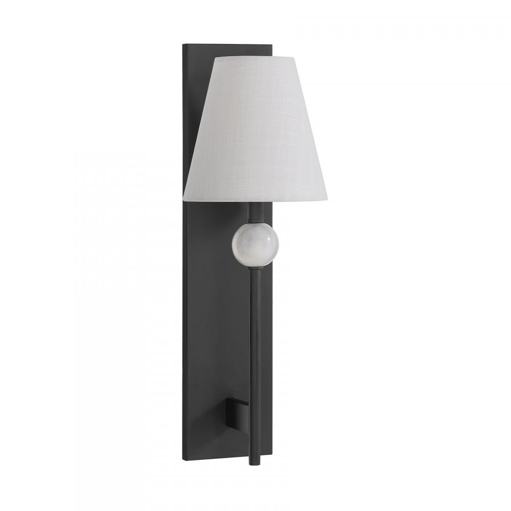 The effortlessly elegant Savoy House Travis 1-light sconce showcases a special touch – an orb of beautiful natural white marble with dark veining. Each piece of marble is unique and will have different veining patterns. This marble takes center stage in an otherwise subtle and understated design. A white fabric shade provides comfortable light while a Matte Black finish adds depth. Travis is 22" in height, 7.5" in width and extends 8.5" from the wall. Uses one candelabra size bulb of up to 60 watts. The bulb is not included.