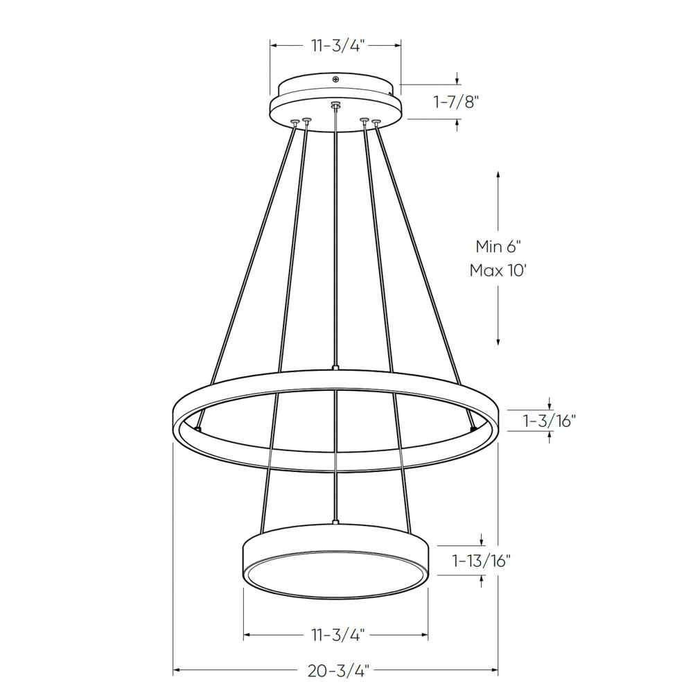 Illuminate your space in style with our two-tier 20-inch pendant, showcasing two-zone lighting with a lit canopy and a 12-inch downlight—all customizable with 5CCT options—in a sleek black finish, effortlessly blending modern design with versatile functionality.