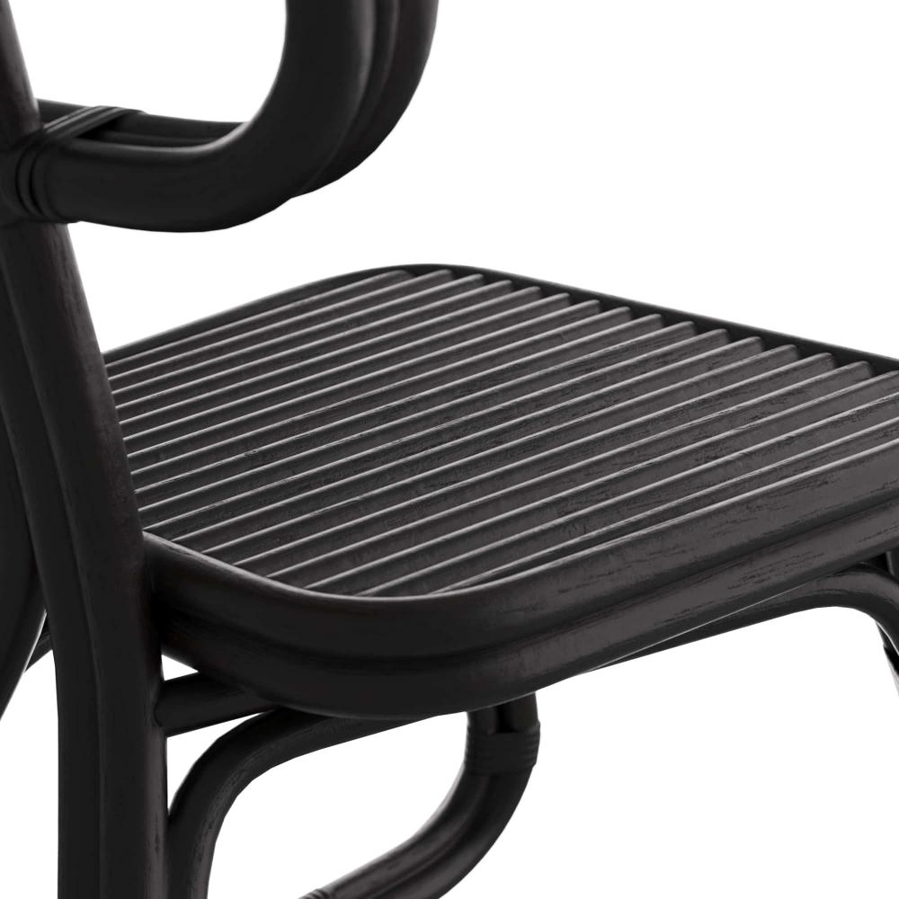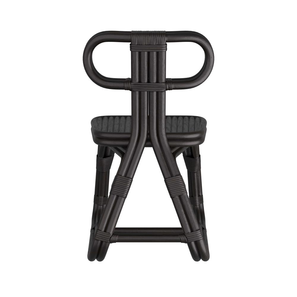OUR SINUOUS URBANA CHAIR LOOKS BEAUTIFUL FROM EVERY ANGLE AND MAKES A STRIKING LINEUP AT A DINING TABLE. THE SCULPTURAL, SLED-LEG SIDE CHAIR IS CREATED IN GLOSSY BLACK RATTAN POLE, WITH RATTAN WRAPPING THE SEAT BACK AND LEGS. FINISH WILL VARY.