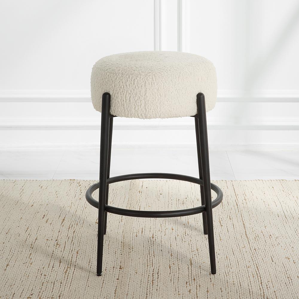 This Plush Counter Stool is Covered in A Luxurious White Faux Shearling, Suspended Within Satin Black Finished Metal Legs.