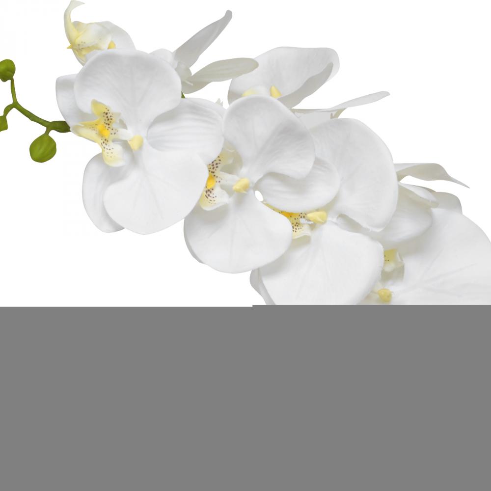 A Gracefully Arching Stem of White Orchids with Reindeer Moss Accents Over A Bed of Naturally Preserved Moss, Placed in A Contemporary Hammered Brass Metal Pot. Container is 4.5" W X 4.5" H X 4.5" D.