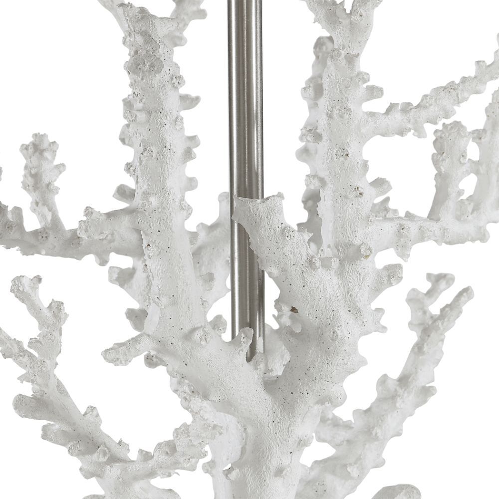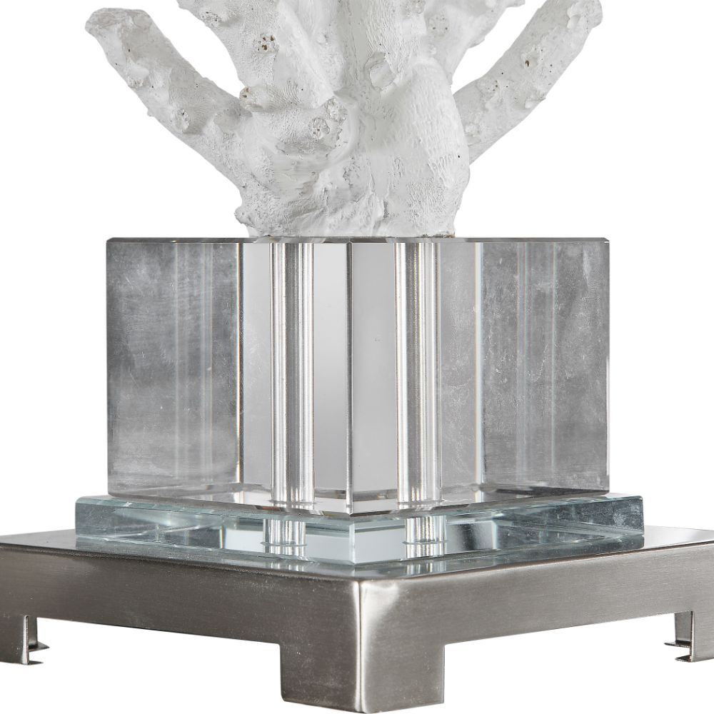 Add Nautical Style to Any Space with This Realistic White Coral Lamp That is Displayed on An Elegant Crystal Platform, Accented with Polished Nickel Plated Details. The Square Hardback Shade is A Light Beige Linen Fabric with Natural Slubbing.